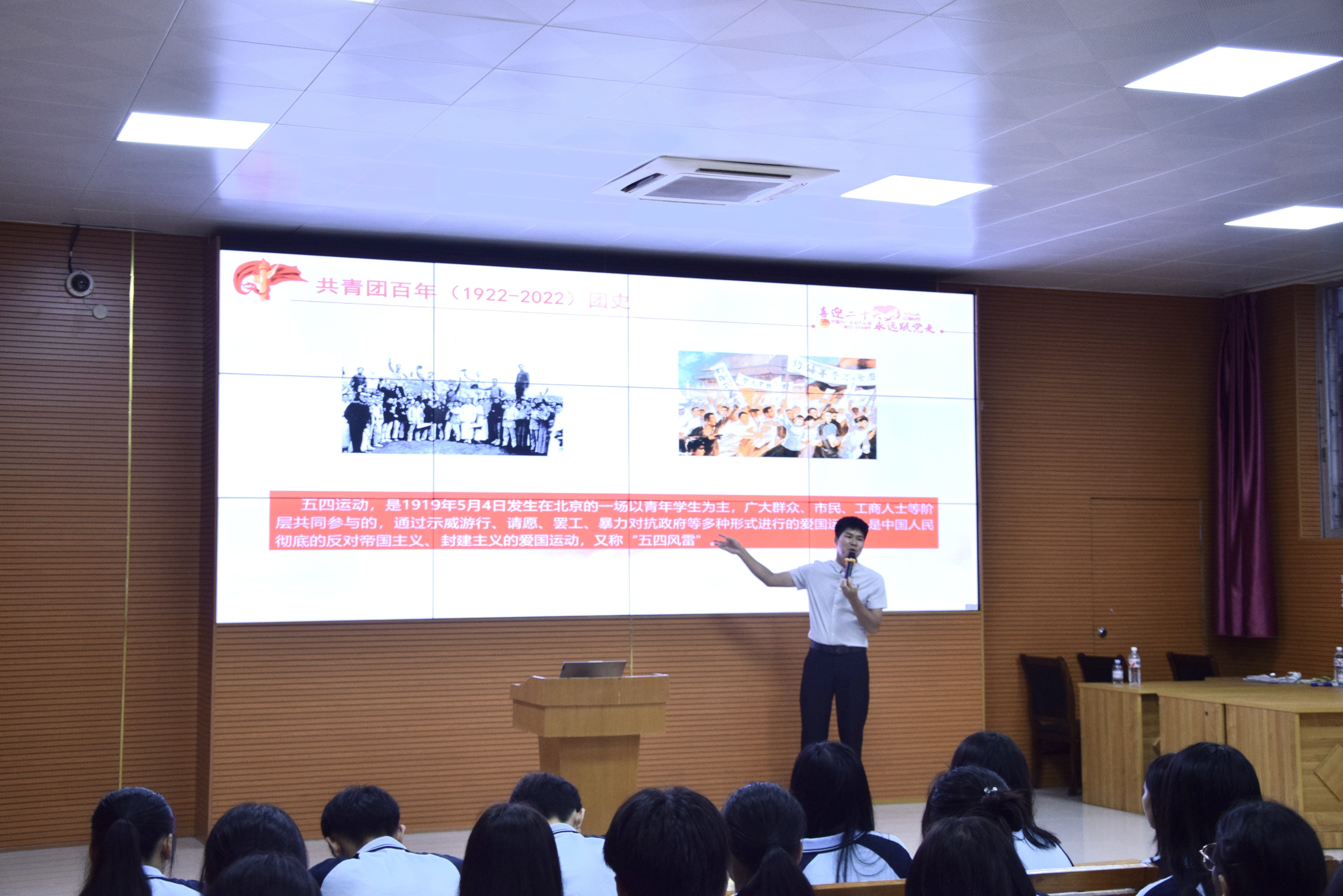6月21日,河池市卫生学校面向2022年新入团的团员开展以“党领导下的中国青年运动史”为主题的团课培训,200余名新团员参加了此次团课,本次授课教师是学校团委书记韦泽榜老师。