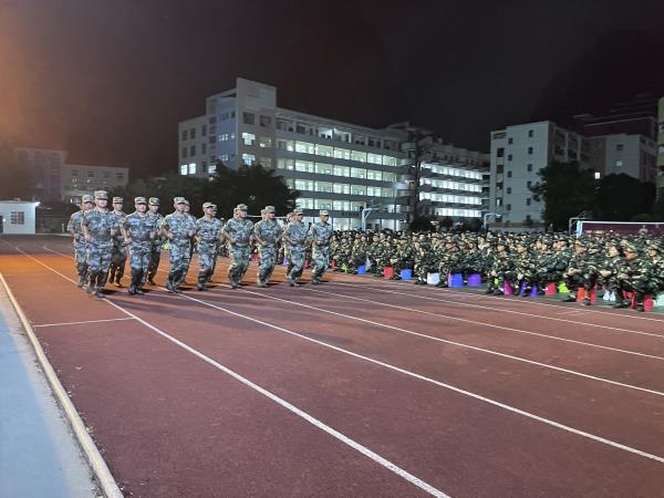 时维金秋,硕果盈枝。9月2日晚上7点30分,河池市卫生学校在田径运动场举行2022级新生开学典礼暨军训动员大会。校长陈朝亮,副校长刘钢、周轩,各职能部门负责人、承训武装部领导周扬杰、新生班主任和2022级全体新生参加大会。学校办公室主任韦恩豪主持会议。