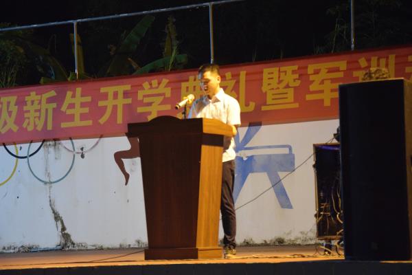 然后,金城江区人民武装部领导周扬杰讲话。他表示,学生军训是推进素质教育、为国家培养高素质国防后备力量的重大举措;学校组织军训,旨在让大家不仅学好专业文化知识,还要学好基本的军事技能、军人作风、军人修养,培养坚韧不拔的意志品格和勇往直前的拼搏精神,同时增强青年学生集体荣誉感和行为纪律性。他要求,全体参训新生要提高站位、端正态度,敢于吃苦、勇于锻炼,服从命令、听从指挥,安全、顺利、圆满地完成此次军训任务。