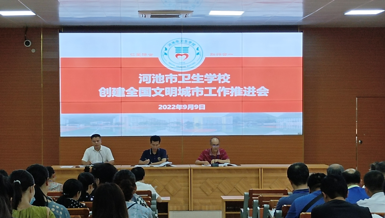 9月9日,河池市卫生学校召开创建全国文明城市工作推进会。校长陈朝亮、副校长周轩出席会议,学校全体教职工参加会议。
