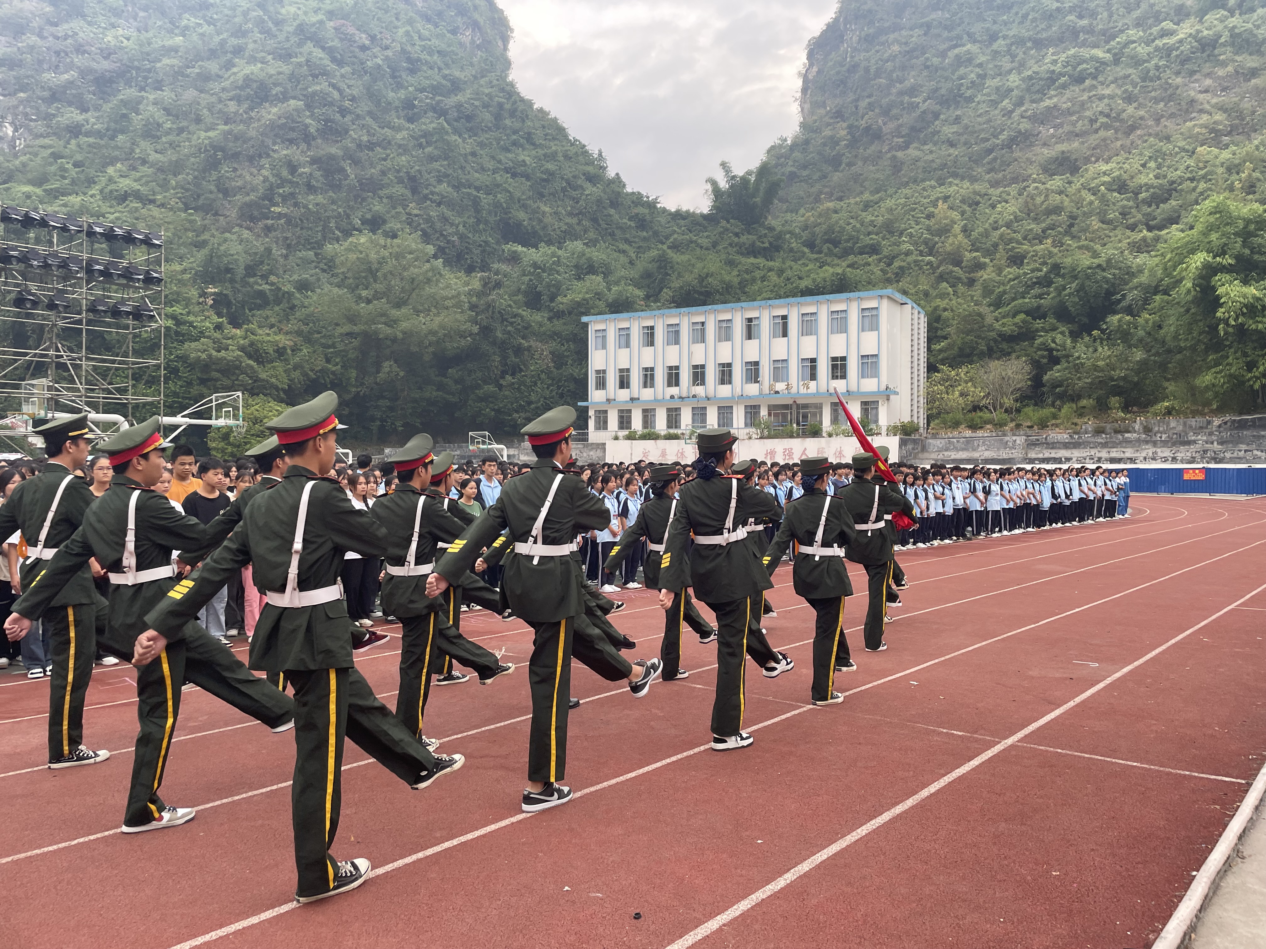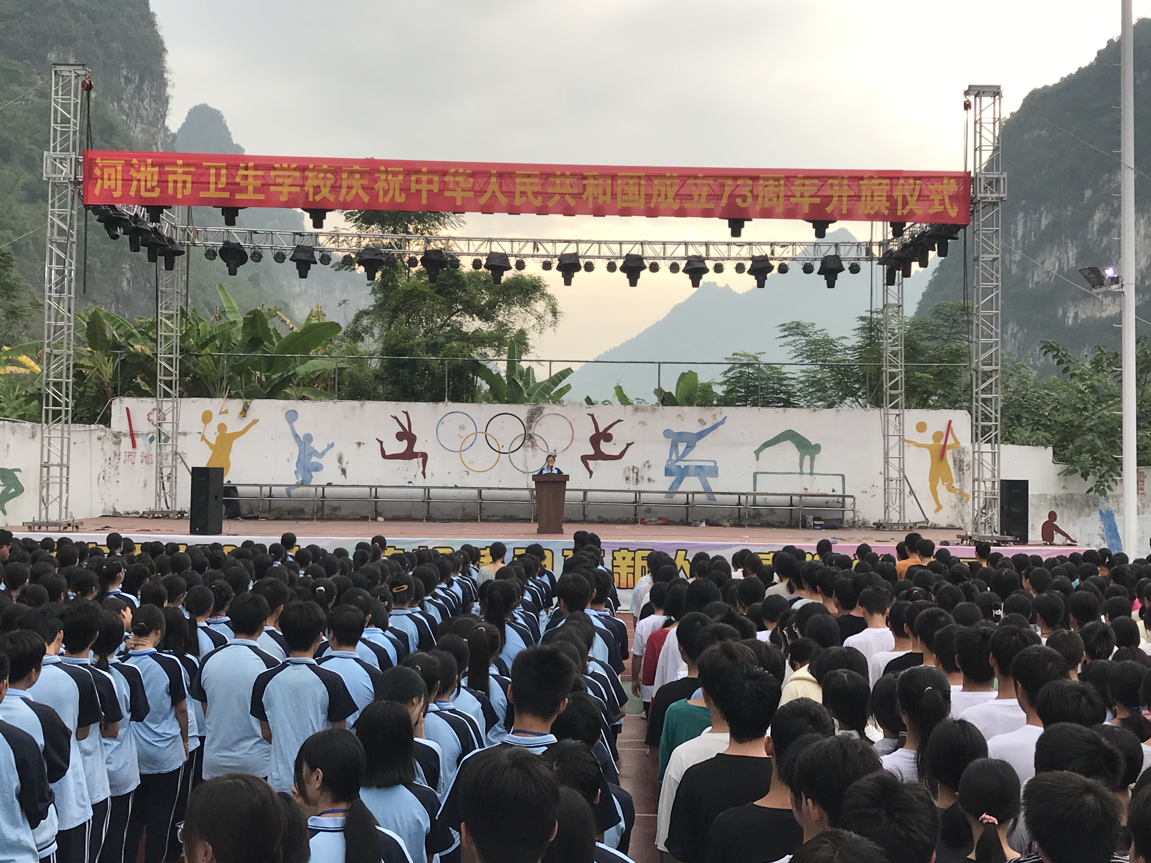 9月30日,河池市卫生学校在运动场隆重举行庆祝中华人民共和国成立73周年升国旗仪式。