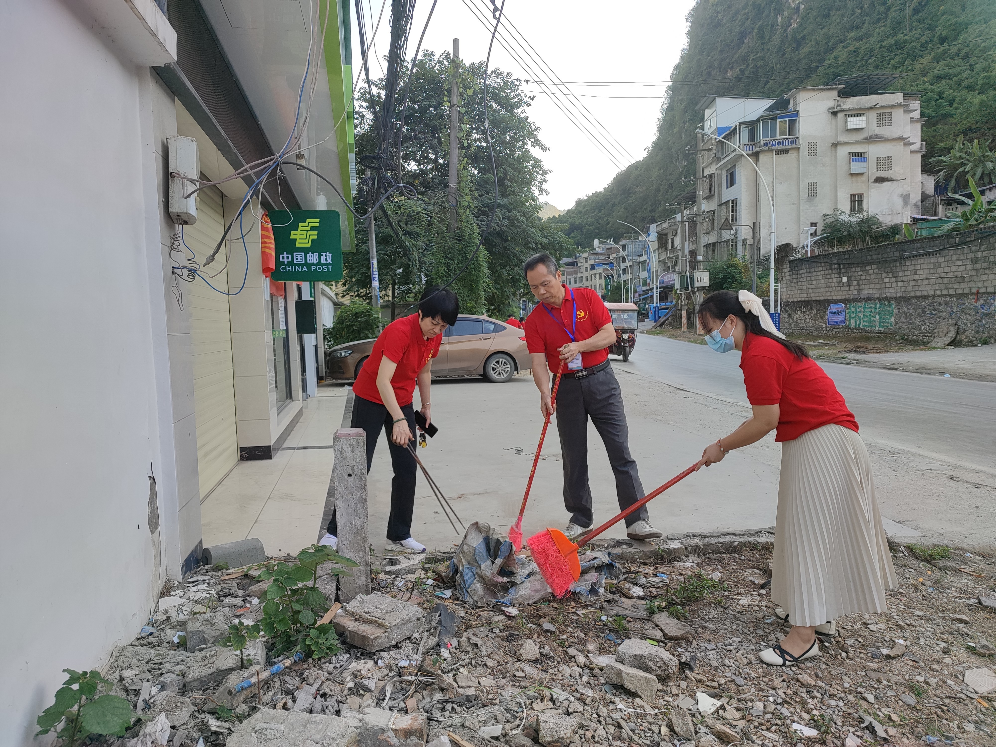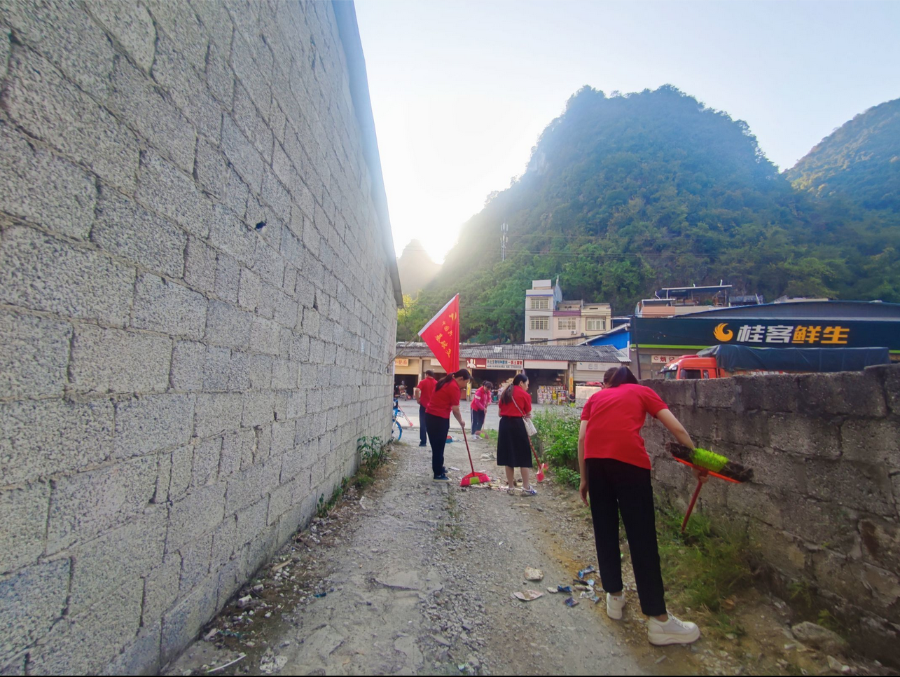党员对偏僻巷道进行打扫