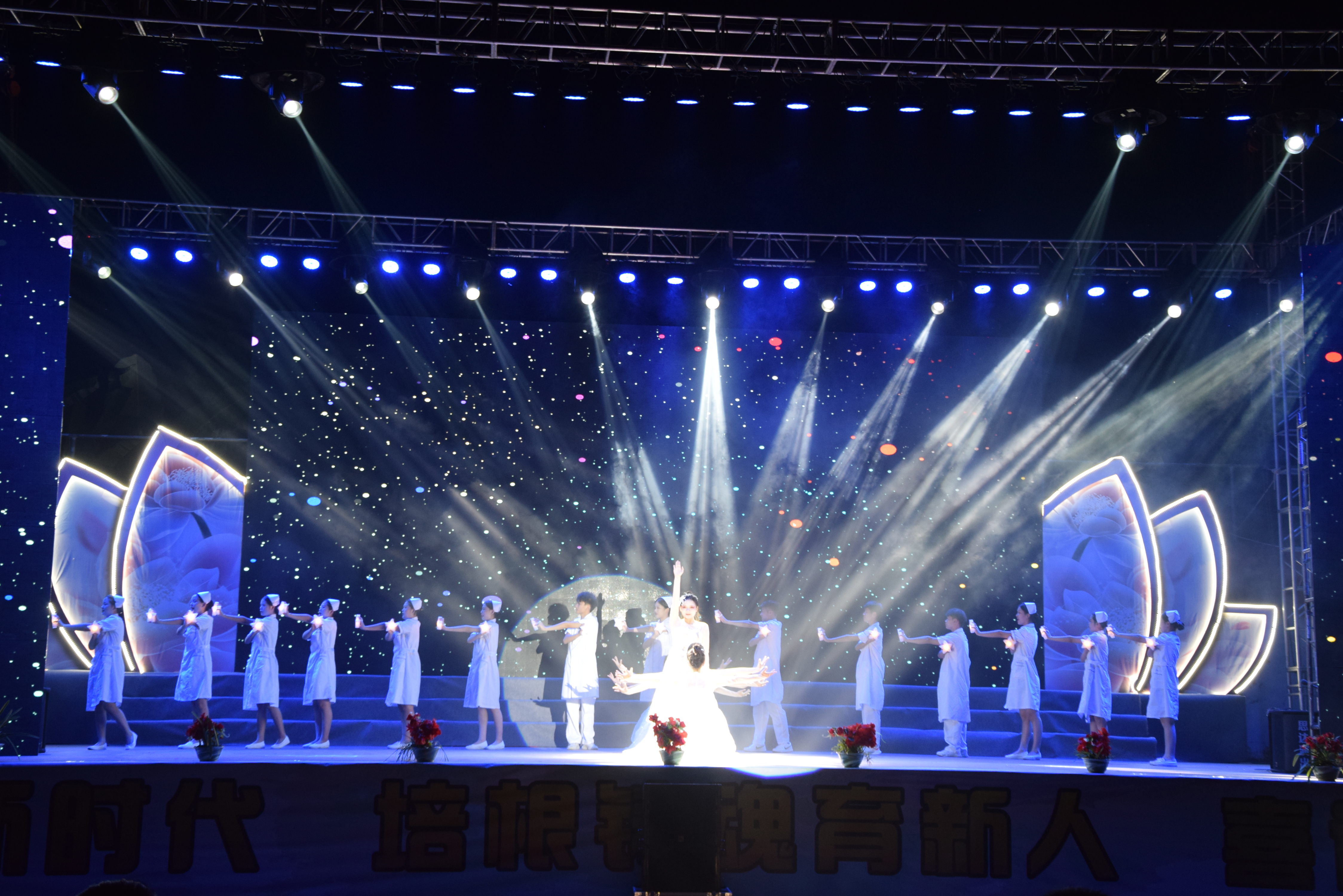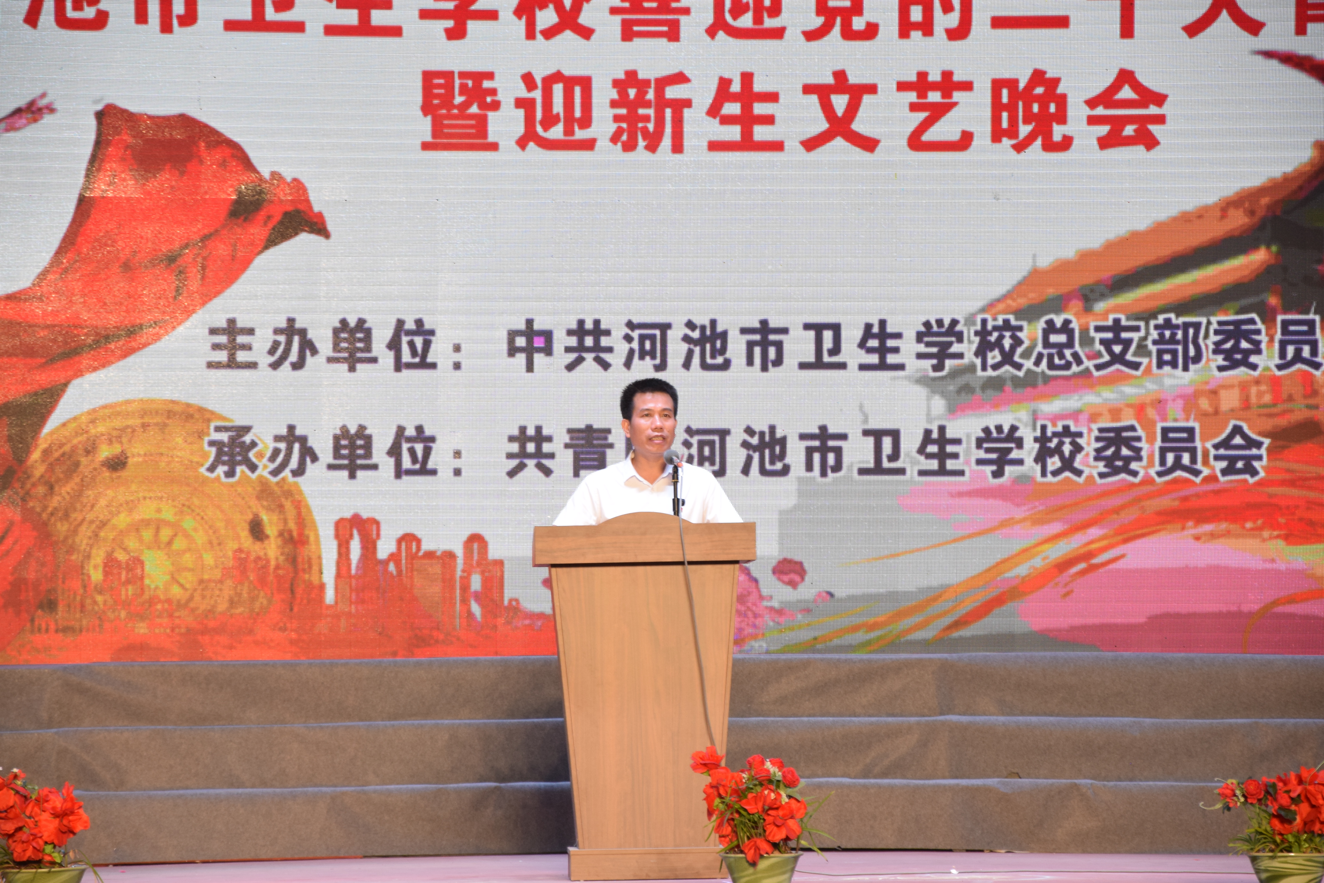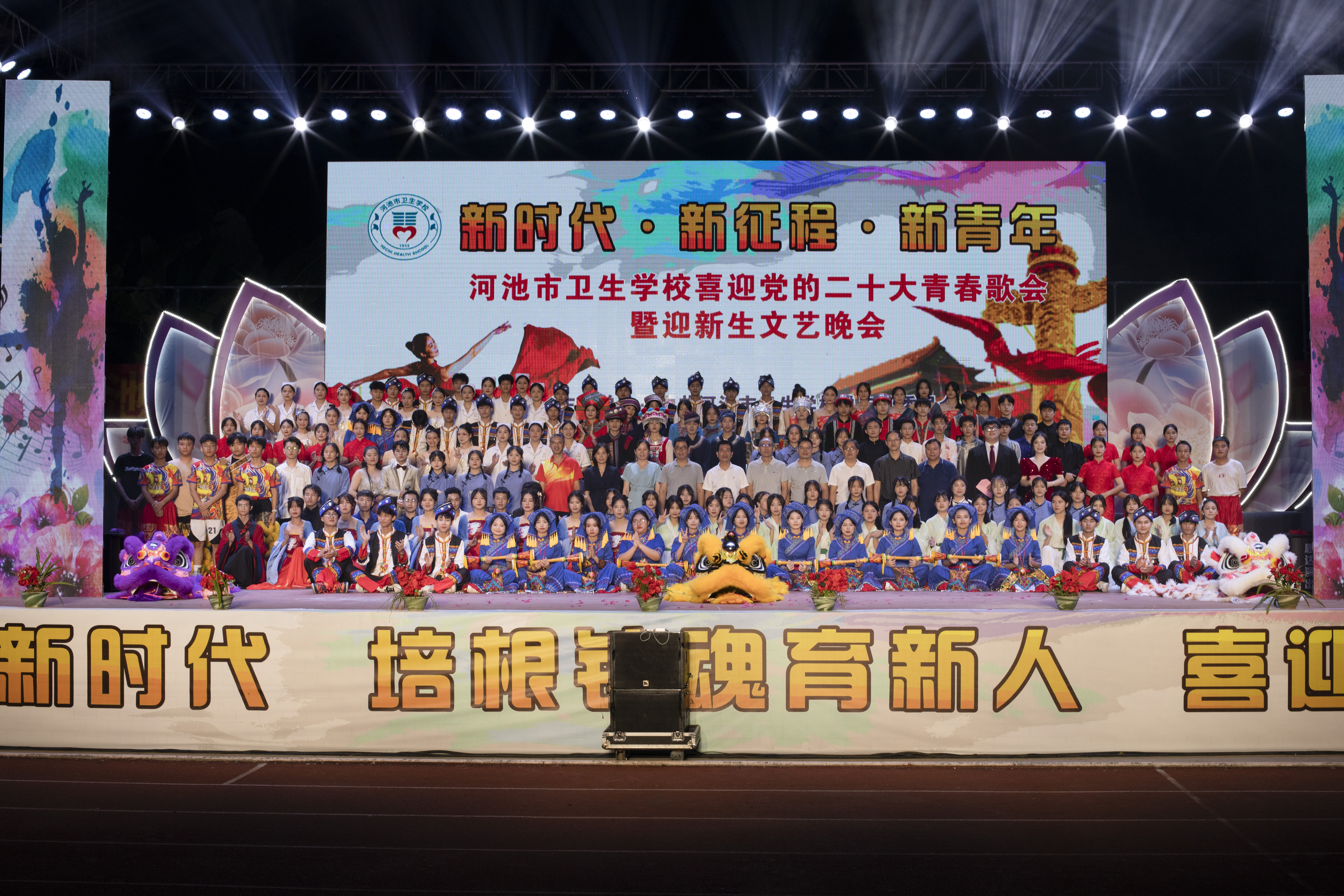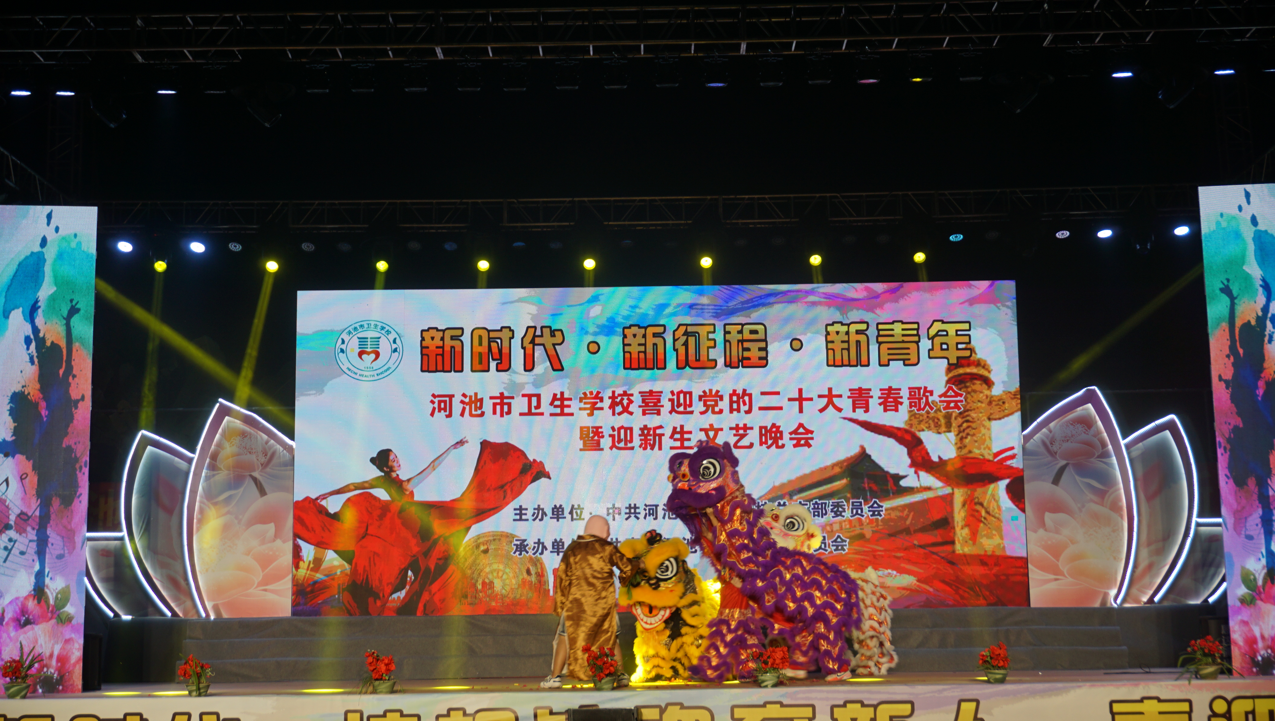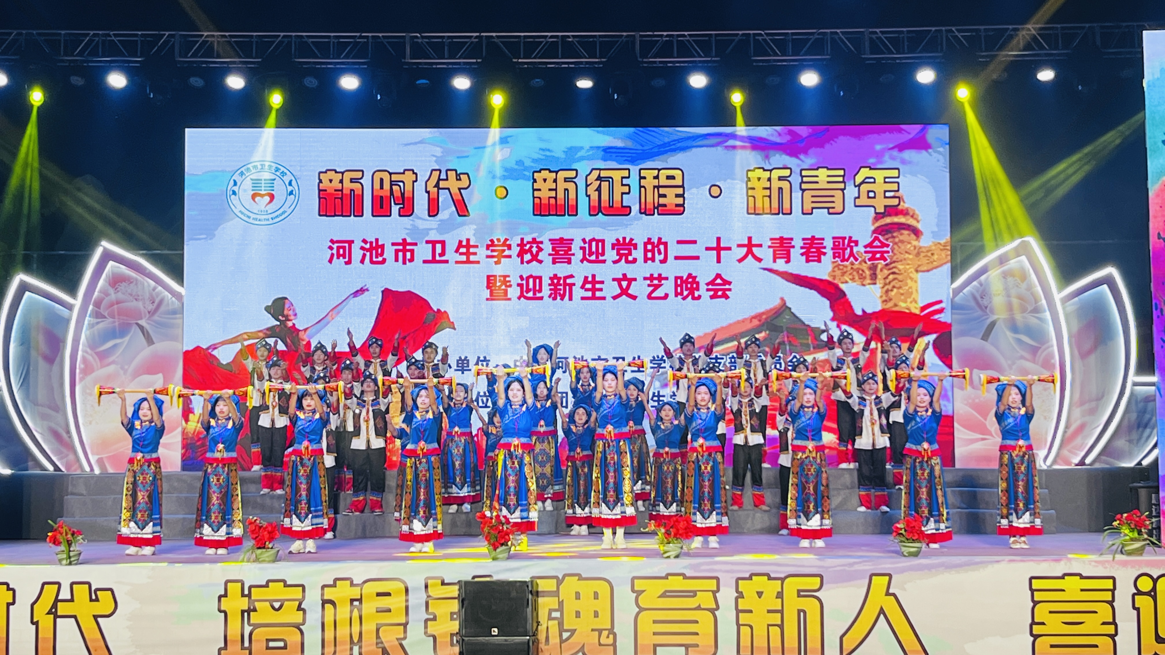9月29日晚,为迎接党的二十大胜利召开,丰富师生精神文化生活,河池市卫生学校举办喜迎党的二十大青春歌会暨迎新生文艺晚会。