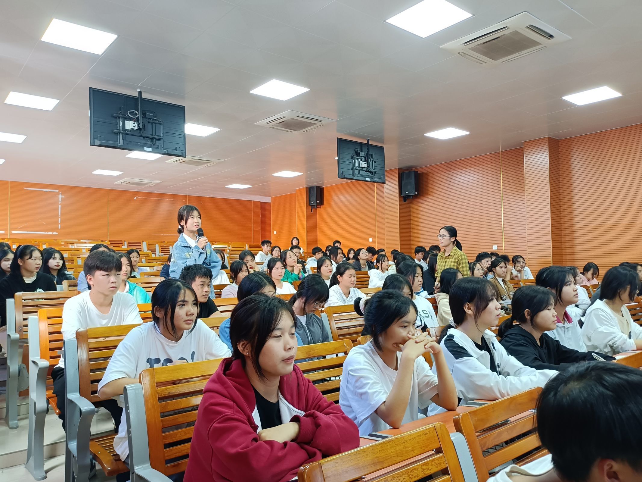 韦巧玲老师从健康与心理健康、心理正常与心理异常、学生心理问题的三个层次以及如何调试心理问题等四个方面进行授课,并通过提问、讨论、案例分析和视频观看等多种方式促进同学们对课堂的聚焦。