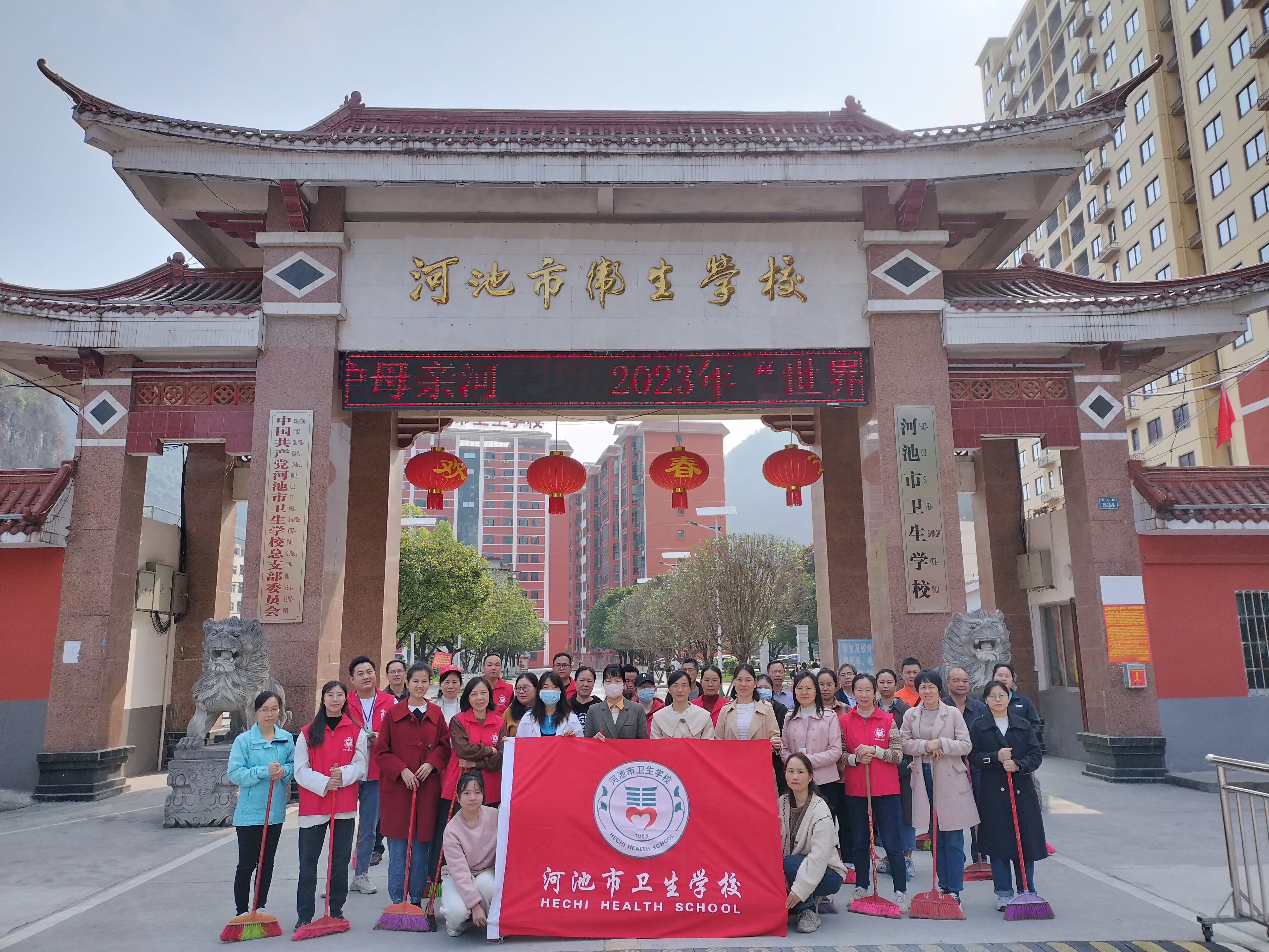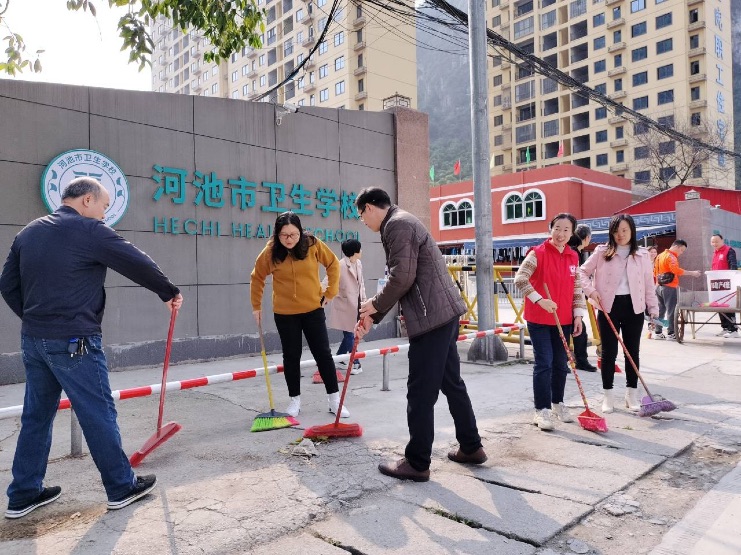 为更好营造干净、整洁、有序的城市环境,进一步助力河池市创建全国、自治区文明城市和卫生城市,2023年4月3日上午,河池市卫生学校组织开展爱国卫生环境整治活动。