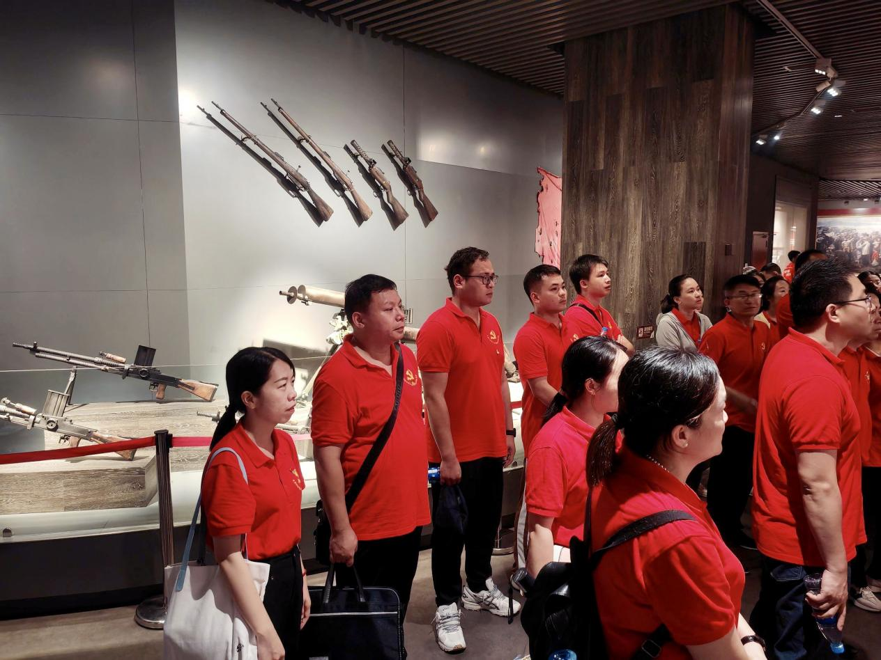 在活动中,全体党员怀着崇敬的心情到全州红军长征湘江战役纪念馆、兴安界首渡口、灌阳县湘江战役新圩阻击战酒海井红军纪念园等革命红色基地,进行了瞻仰仪式、敬献花篮以及重温入党誓词等活动。通过讲解员声情并茂的讲解,了解湘江战役的光辉壮烈的战斗历程。通过一张张珍贵的历史图片,一件件有着革命历史故事的物品,大家置身其中,真切地感受到革命先烈大无畏的革命英雄主义、顽强的战斗精神,也为革命先烈勇于牺牲的精神所感染。