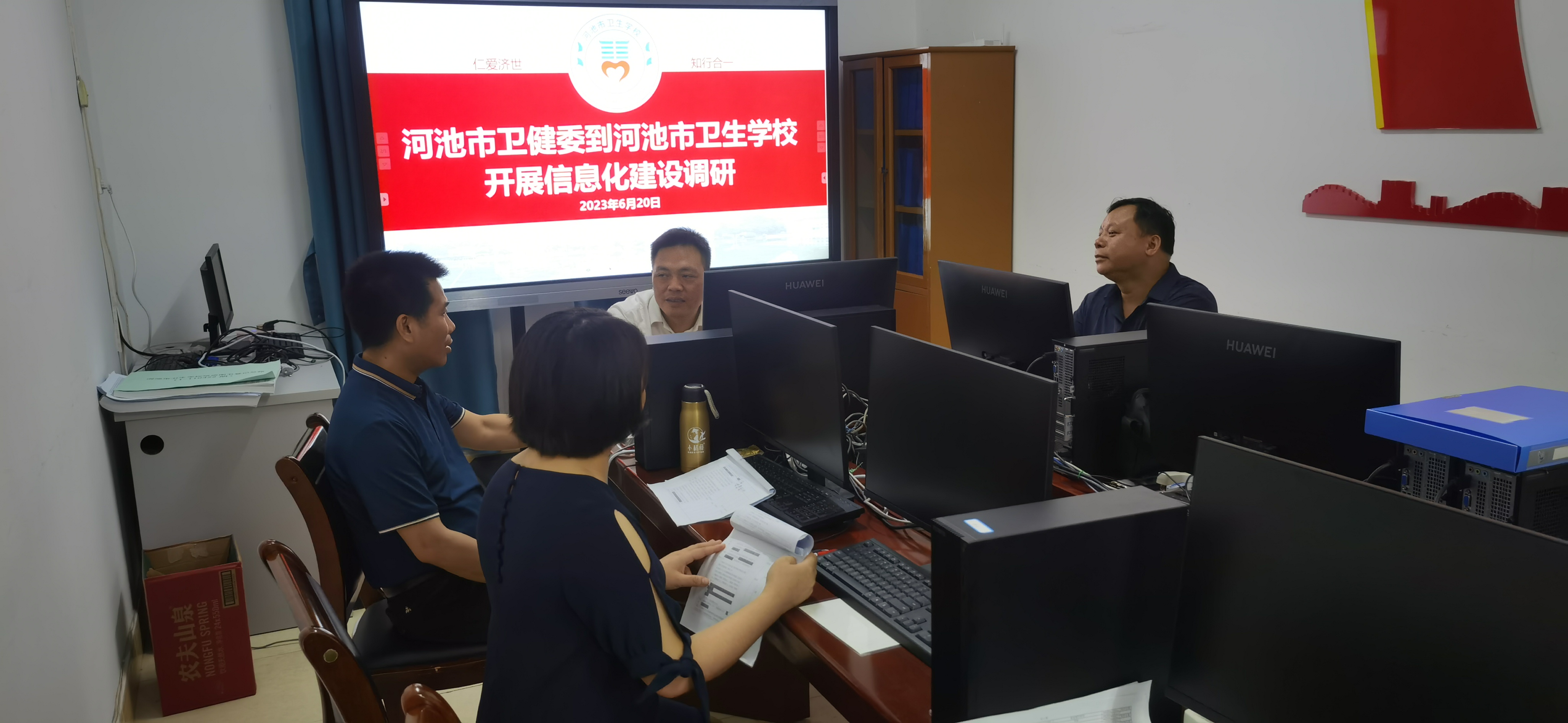 6月20日,河池市卫生健康委员会规划信息科陆启伟科长到我校进行信息化建设调研。参会人员有陈朝亮校长、莫苗副校长、培训中心熊竹主任。陆启伟科长首先了解学校信息化建设基本情况,其次询问我校掌上校园服务管理平台存在命令执行漏洞落实整改情况。陈朝亮校长表示,学校高度重视信息化建设、特别是网络信息安全工作,建立网络安全运行相关制度,每年都要投入一定经费对网络设备进行升级,加强网络设备的安全性和稳定性。同时加强师生网络信息安全教育宣传,提高网络安全意识。学校接到掌上校园服务管理平台存在命令执行漏洞的通报后,第一时间通知该平台服务商,及时处理漏洞,并把处理结果形成报告上报规划信息科。陆科长对学校的处理结果表示满意,同时强调,要完善网络安全运行制度,及时发现和处理安全事件。定期参加网络安全演练,模拟攻击和防御,检验网络安全的应对能力和效果。发生网络安全事件,应及时处理并上报主管部门。