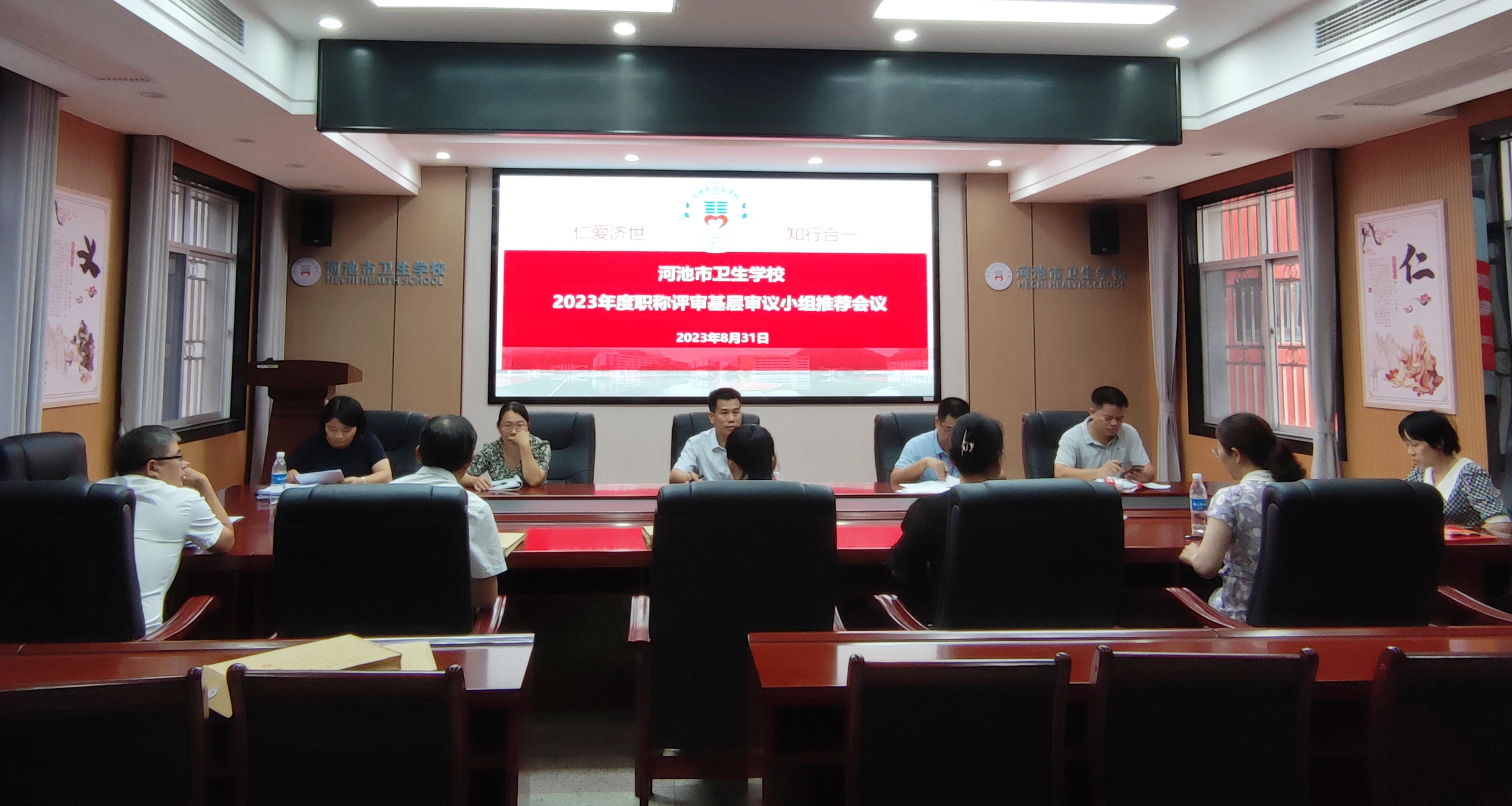 2023年8月31日下午,河池市卫生学校2023年度职称评审基层审议小组推荐会议在学校办公楼五楼会议室如期举行,会议由党总支书记陈朝亮校长主持。参加会议的有学校领导、党总支成员、答辩考核小组成员以及相关工作人员。