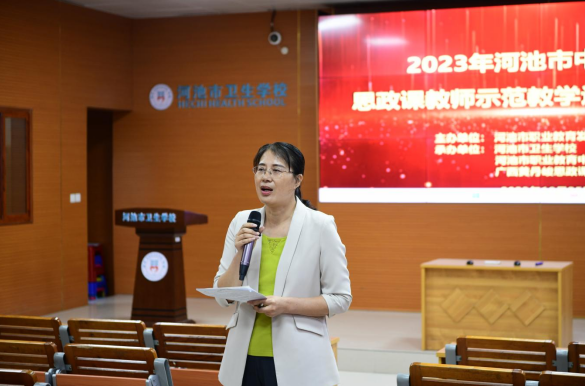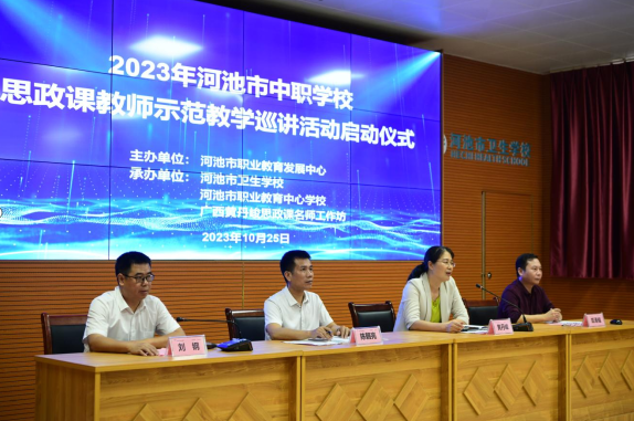 为进一步优化课堂教学,促进教师专业化成长,全面提升教学水平,营造教师相互学习的氛围,2023年10月25日,广西特级教师黄丹峻思政课工作坊、河池市职业教育中心学校思想政治课教学部和河池市卫生学校联合开展思政课课堂教学交流活动。