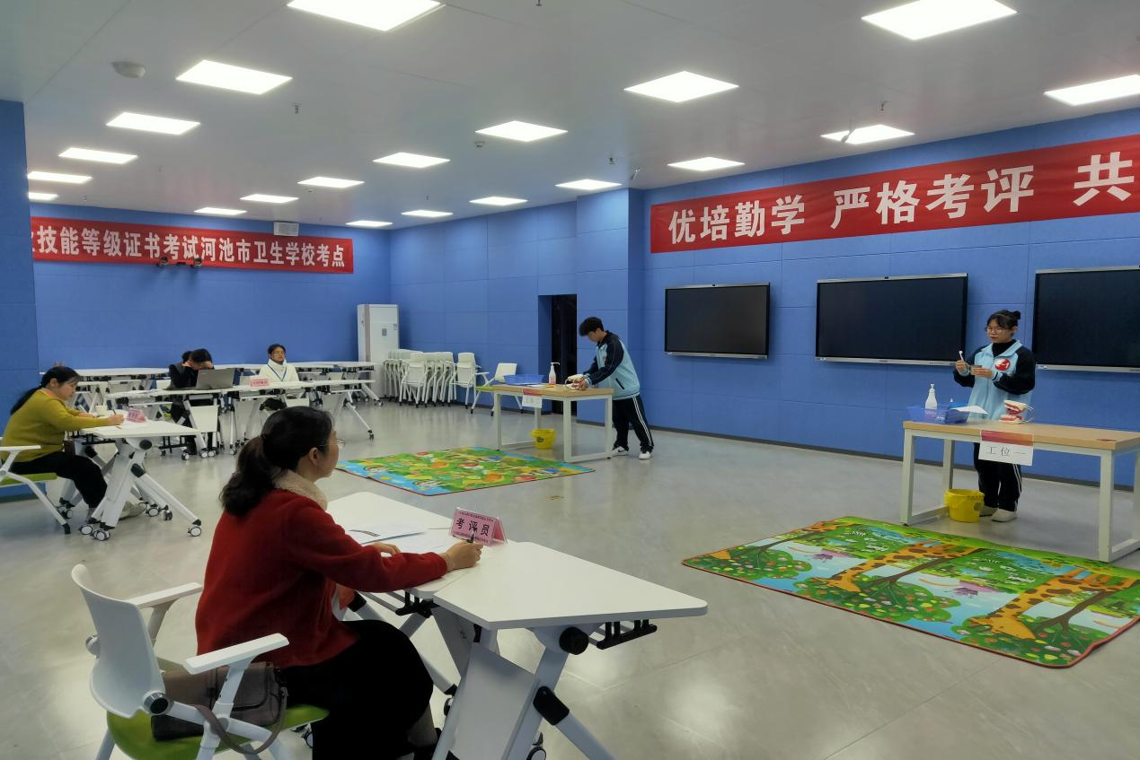 为深入贯彻国务院《国家职业教育改革实施方案》和《关于在院校实施“学历证书+若干职业技能等级证书”制度试点方案》,河池市卫生学校在“1+X”培训上持续发力,建立等级考证项目团队,按照高质量发展要求,不断拓展完善卫生职业教育和培训体系,促进学历证书与职业技能等级证书的相互衔接、融通,将日常专业课程和“1+X”考试课程有机融合,有效提升学校卫生职业教育质量水平和学生就业能力。