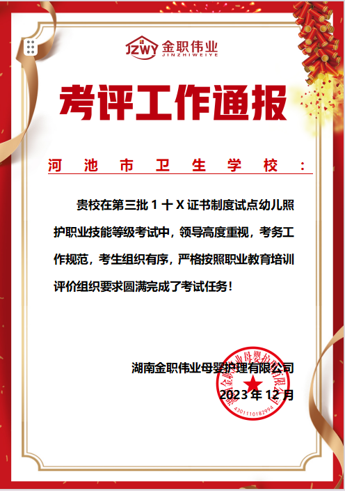 此次考试得到了湖南省金职伟业母婴护理有限公司的高度评价。“1+X”证书制度的实施,进一步深化了我校课证一体人才培养模式,切实提升了人才培养质量。我校再接再厉,以市场需求为导向,提升学生职业技能,增强学生的就业竞争能力和学校的人才供给能力,努力培养更多优秀的幼儿照护高素质技术技能人才!