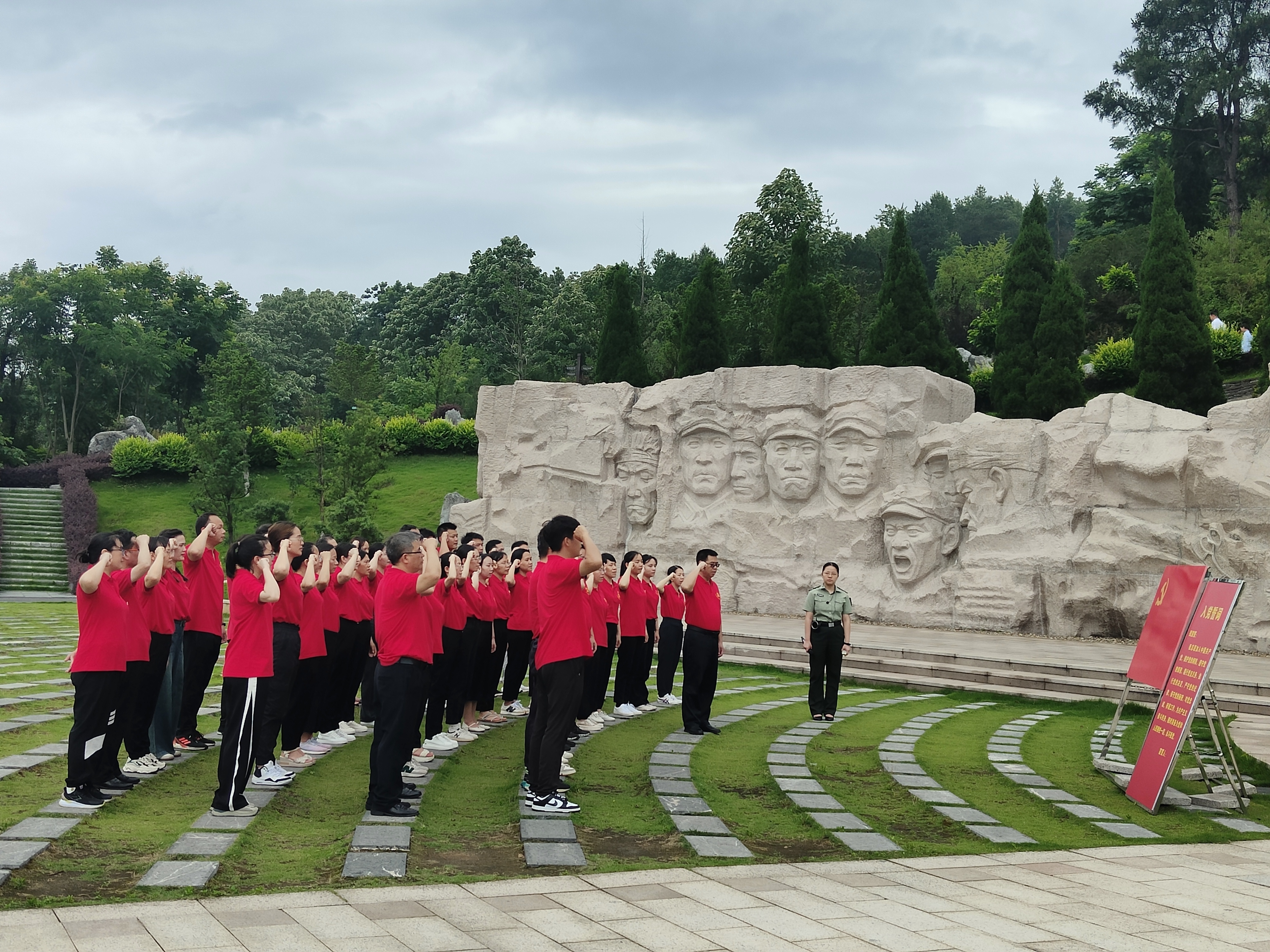 9日下午,全体人员来到了全州红军长征湘江战役纪念馆,认真聆听讲解员动情讲述红军强渡湘江,突破国民党反动派第四道封锁线的英勇战斗史,重温那段波澜壮阔的革命历程。在纪念园凭吊广场,党总支纪检委员带领全体教职工党员面对党旗,再次重温入党誓词,激励大家时刻牢记党员身份,坚定理想信念,传承红色基因。