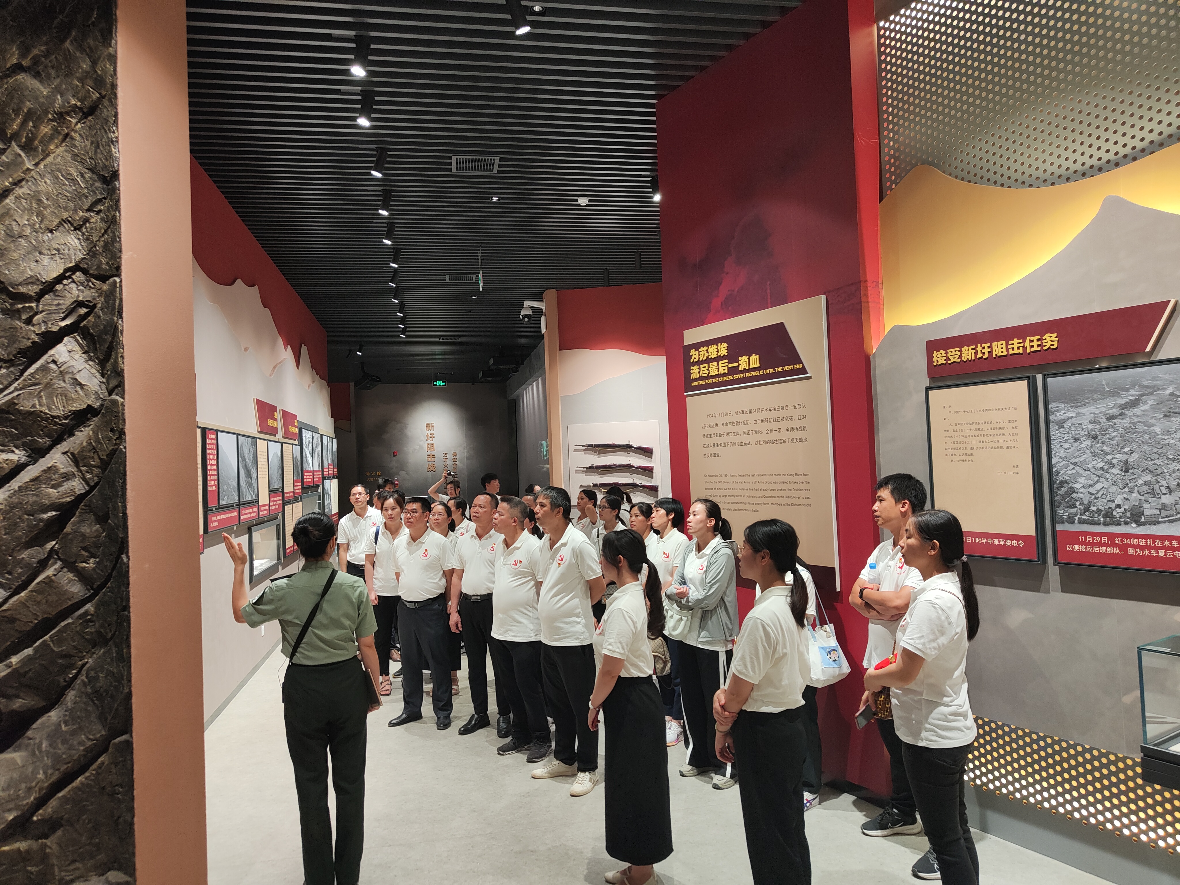 10日上午,大家到兴安县红军长征湘江战役界首渡口参观学习。下午,到了红军长征突破湘江纪念馆进行参观,在讲解员的引导下,大家时而凝神倾听,时而驻足观看,透过一件件文物,一张张图片,一个个雕塑,追寻历史痕迹,回顾当年共产党人在湘江战役中的壮烈情景,缅怀烈士,铭记历史,坚定信仰。