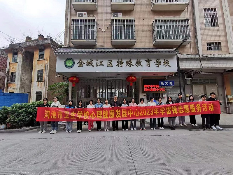 3月18日,河池市卫校心理中心师生一行19人到河池市金城江区特殊教育学校开展学雷锋志愿服务活动。