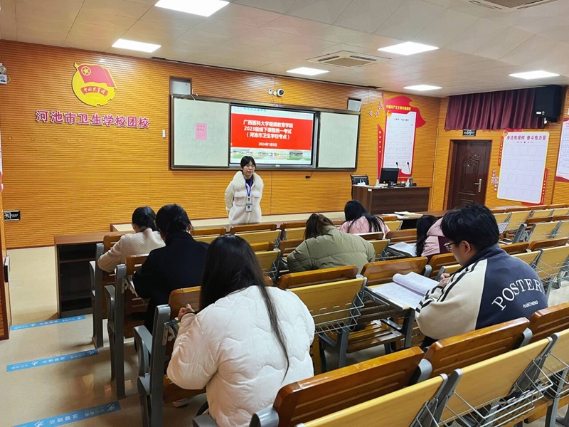 广西医科大学成人教育课程统考是成教教学工作的重要环节,是规范教学管理,确保教学质量的重要举措。2024年1月5日,河池卫校教学点与继续教育学院同时开考。本次统考是疫情后的第一次线下考试,招生就业办黄鸿宇主任到场指导,成教部和教务科负责组织实施。