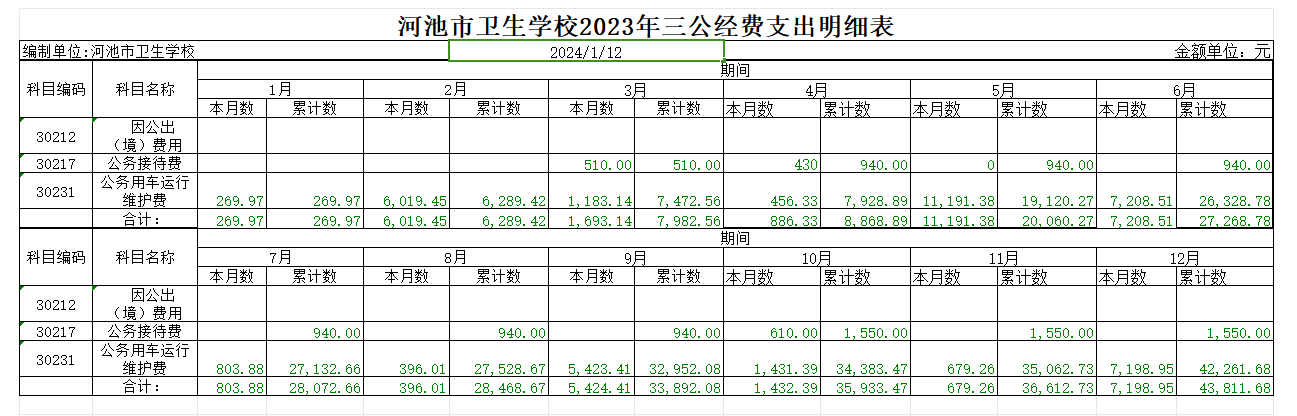 河池市卫生学校2023年三公经费支出明细表