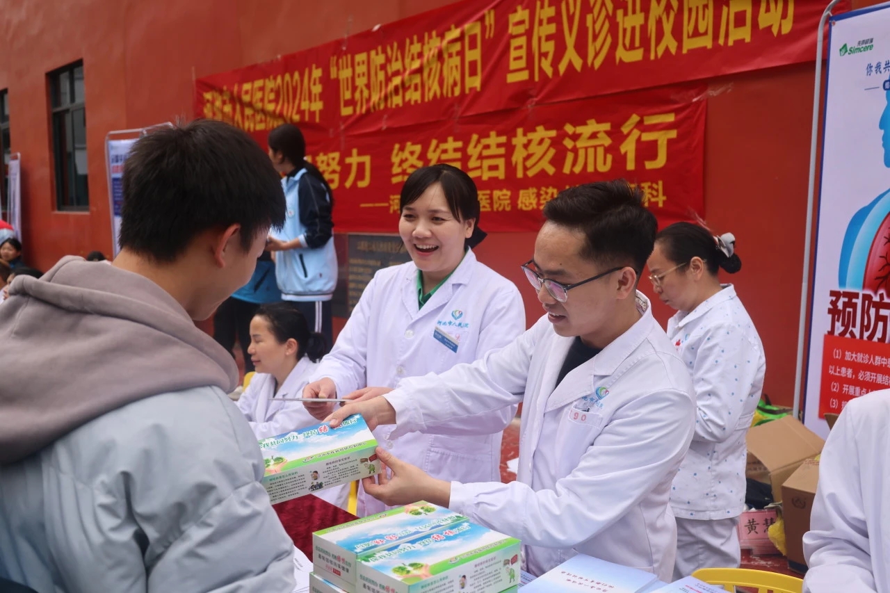2024年3月24日是第29个“世界防治结核病日”,此次防结核宣传进校园活动旨在深入贯彻党的二十大精神,呼吁社会各界广泛参与,终结结核病的流行,维护人民群众的身体健康。3月22日下午,我校联合河池市人民医院组织感染性疾病科、医院感染管理科在校园大道开展了一场结核病防治宣传教育进校园活动。