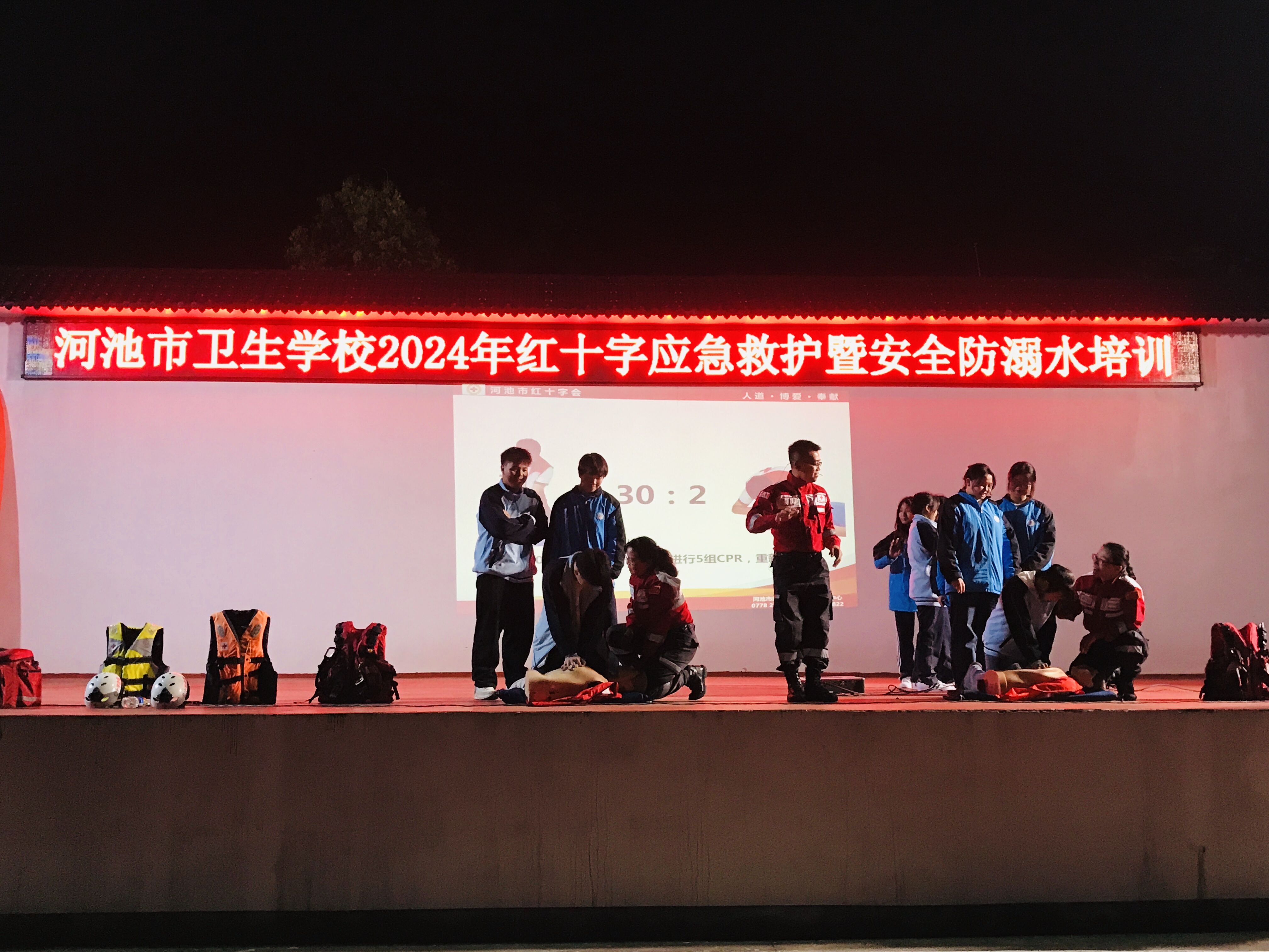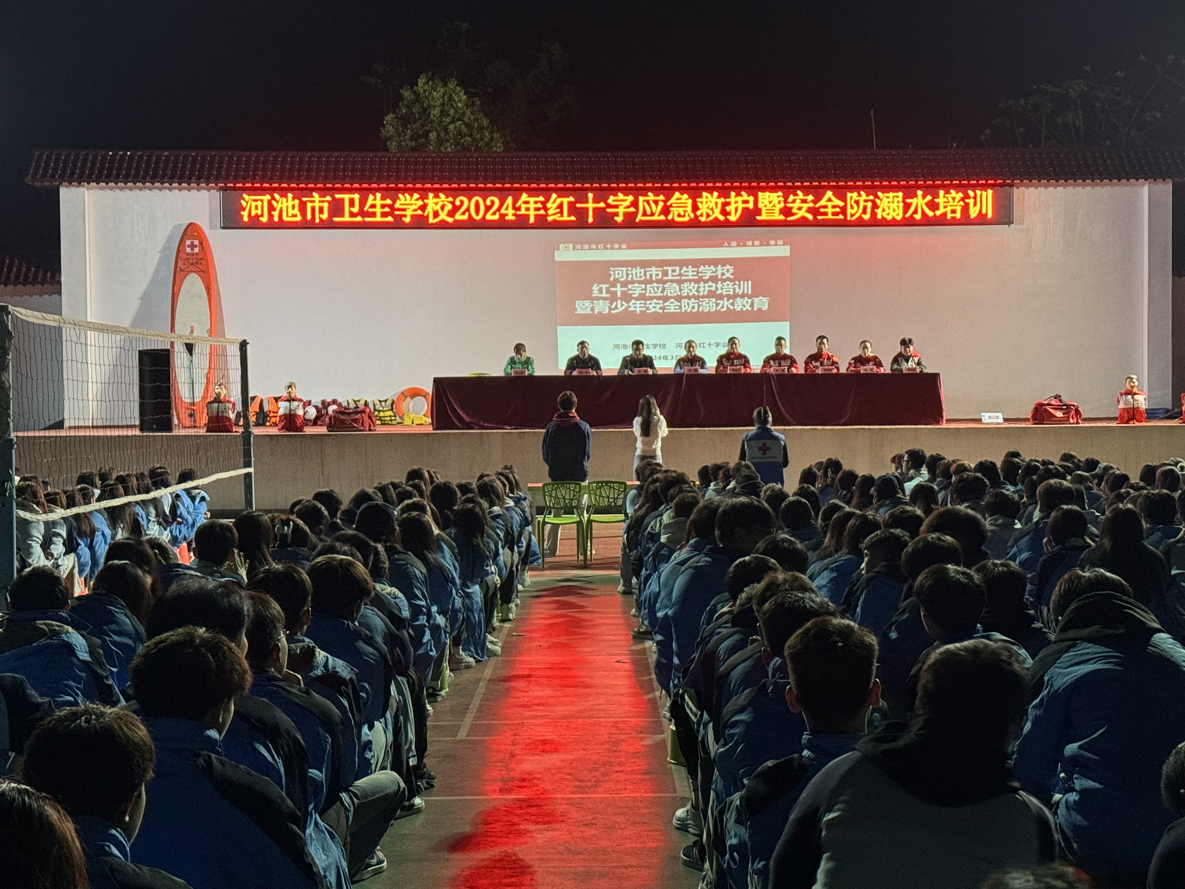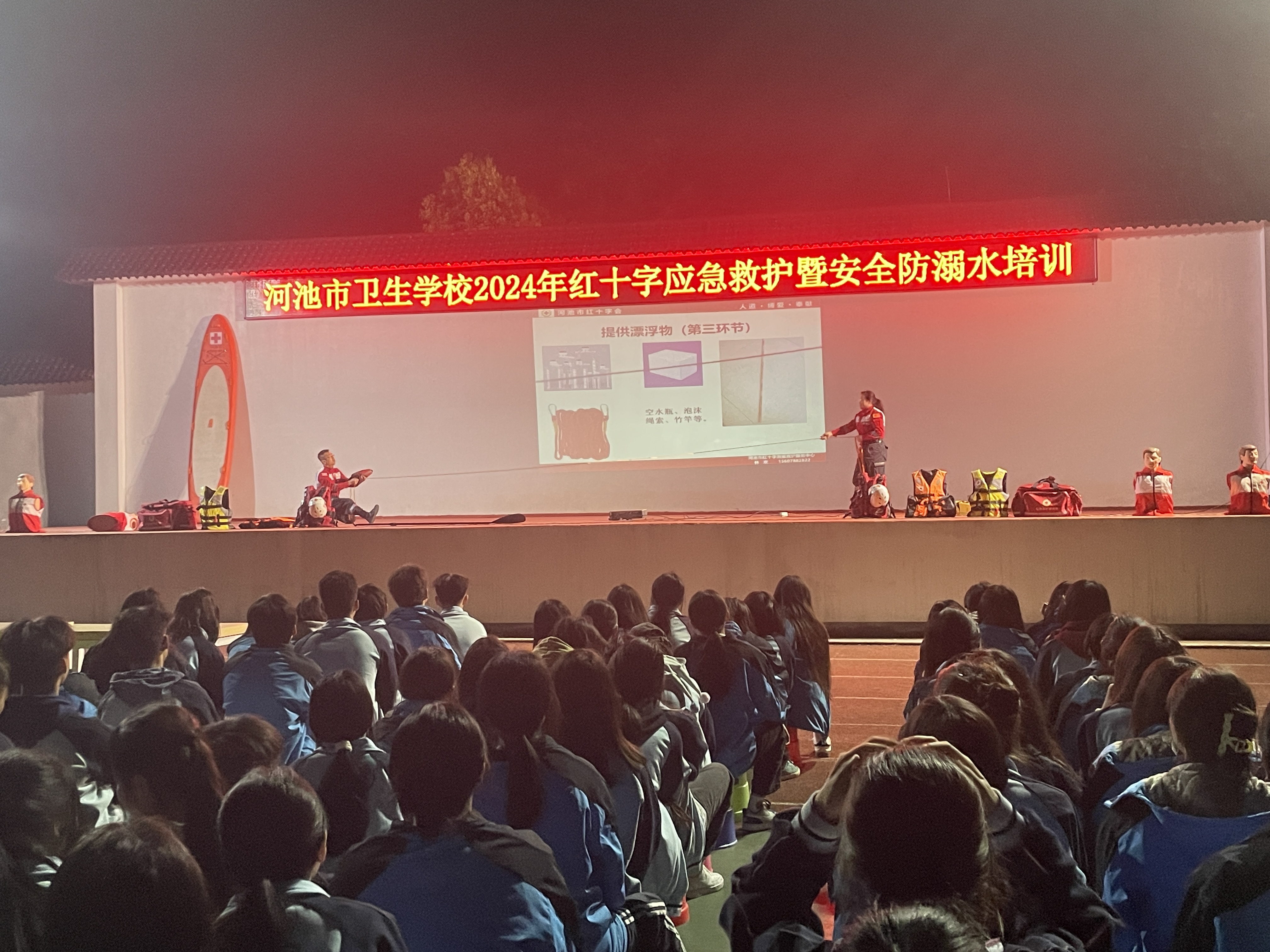 3月12日晚,为进一步加强校园安全教育,提高学生们的应急救护能力和防溺水意识,河池市卫生学校特别邀请了河池市红十字应急救援队到我校开展2024年红十字应急救护培训暨安全防溺水培训活动。