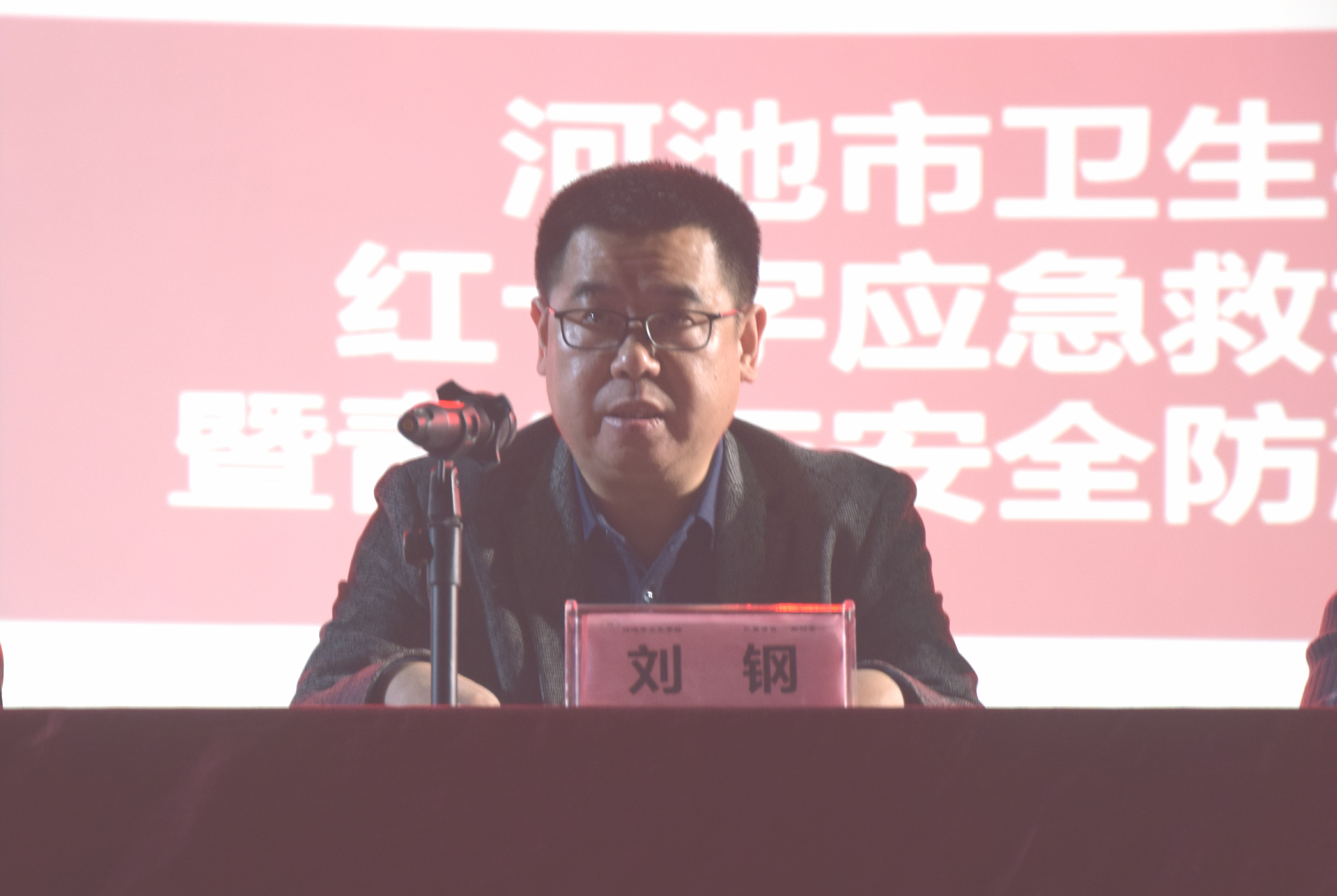 会上,刘钢副校长代表学校对河池市红十字会应急救援队到来表示热烈欢迎和感谢,并表示,本次培训活动旨在传播红十字精神和应急救护知识,提高大家在紧急情况下的自救互救能力,同时加强防溺水教育,让更多的人了解溺水的危害和预防措施,更加深入地了解应急救护的重要性和必要性。