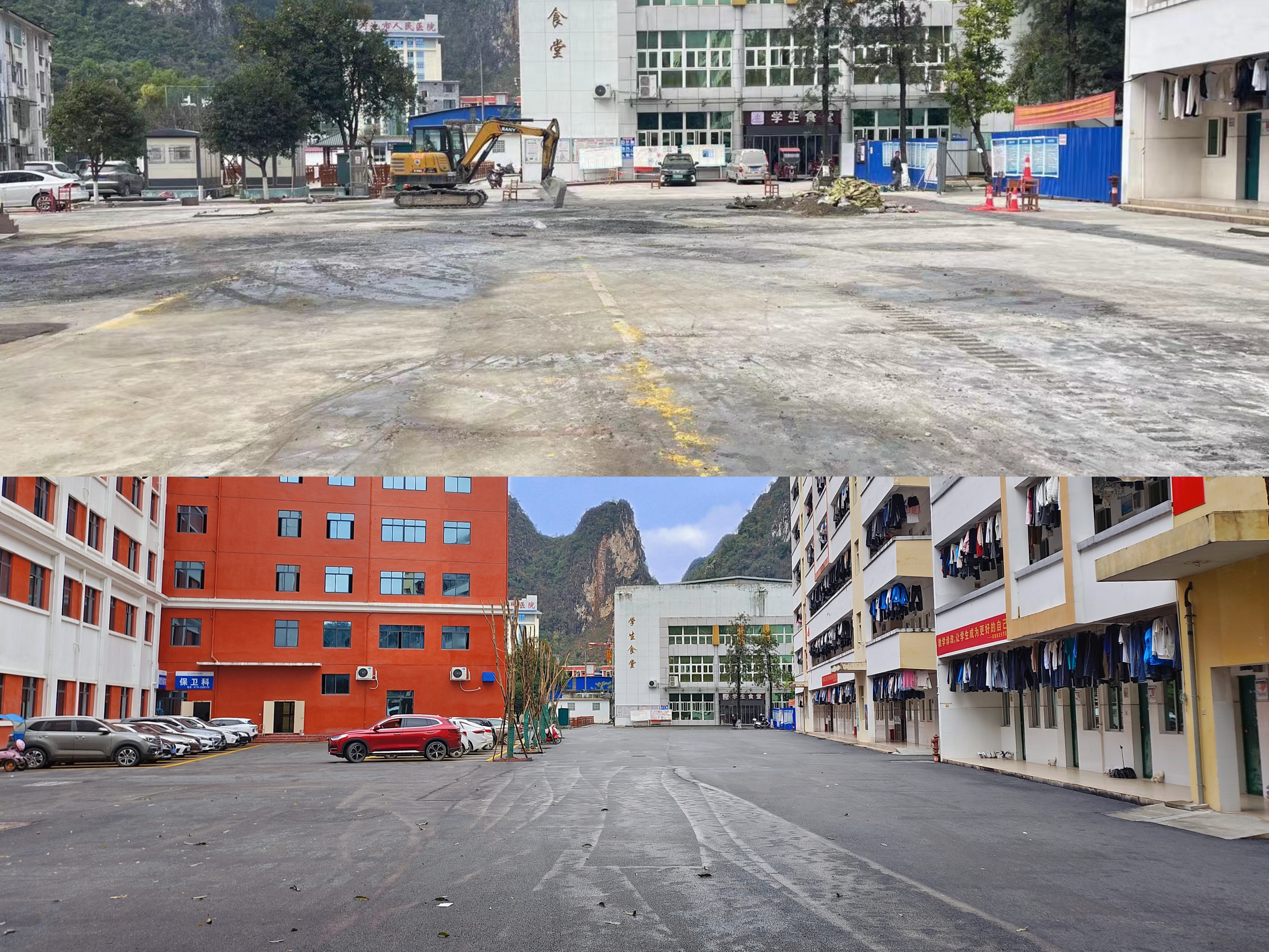通过改造,学校校园环境得到进一步改善,容校貌焕然一新,为河池市创建全国文明城市工作贡献力量。