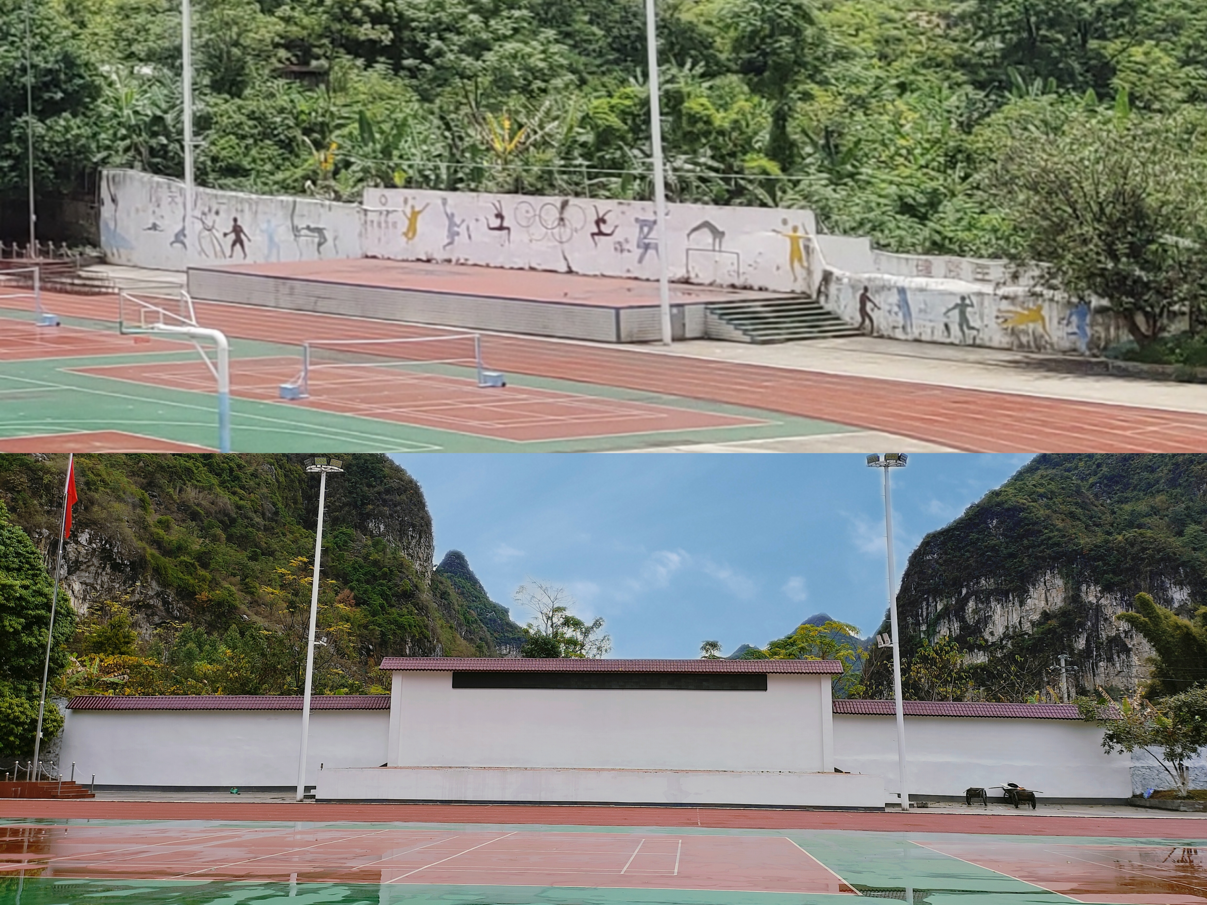 围墙维修改造前后
