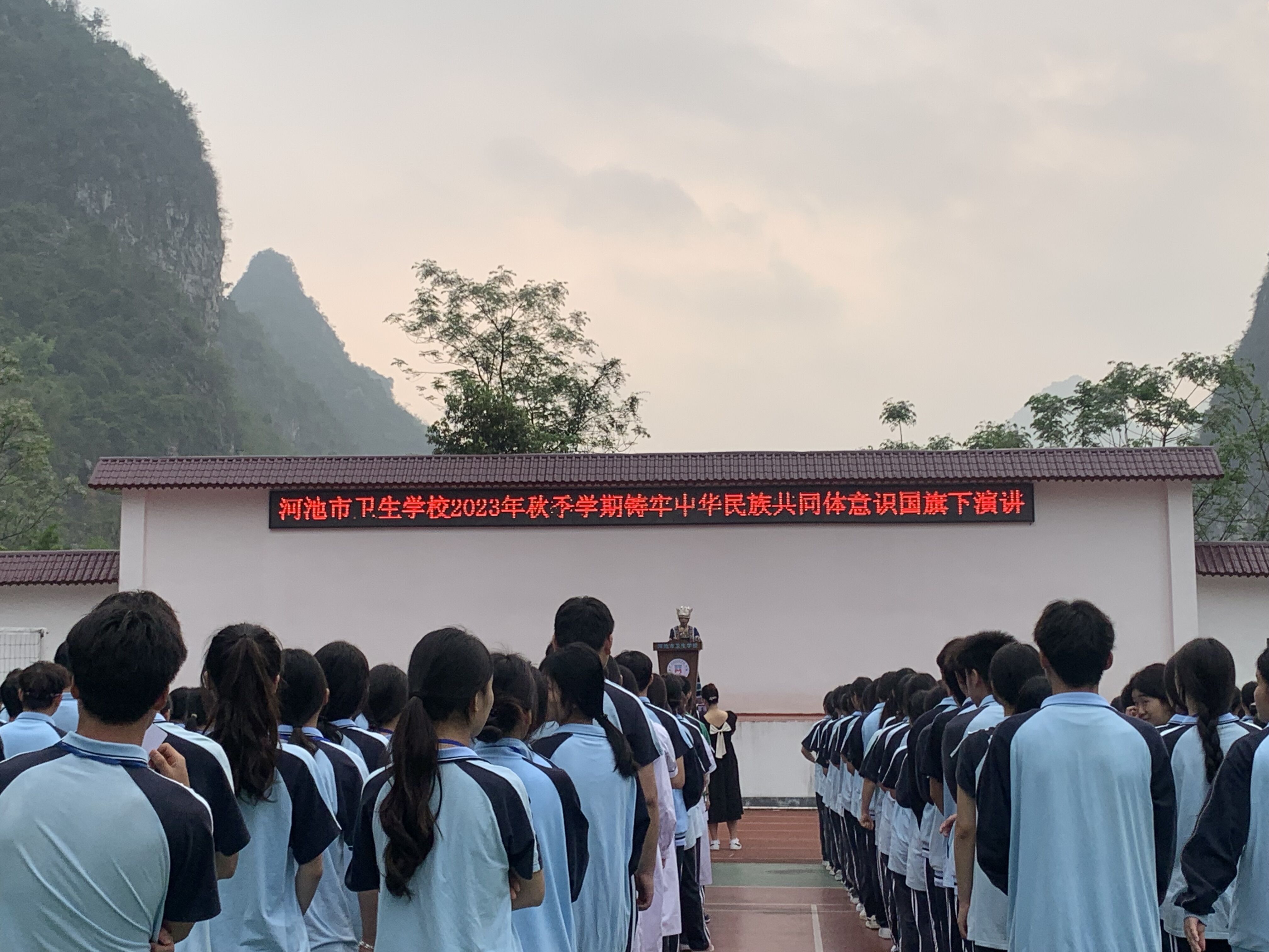 为深刻领会铸牢中华民族共同体意识的重要意义。河池市卫生学校于10月9日开展了“铸牢中华民族共同体意识”国旗下讲话活动。