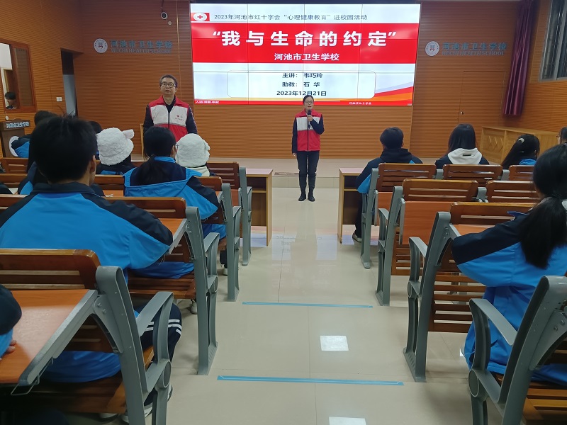 2023年12月21日晚,河池市红十字会到河池市卫生学校开展“心理健康教育”进校园活动。