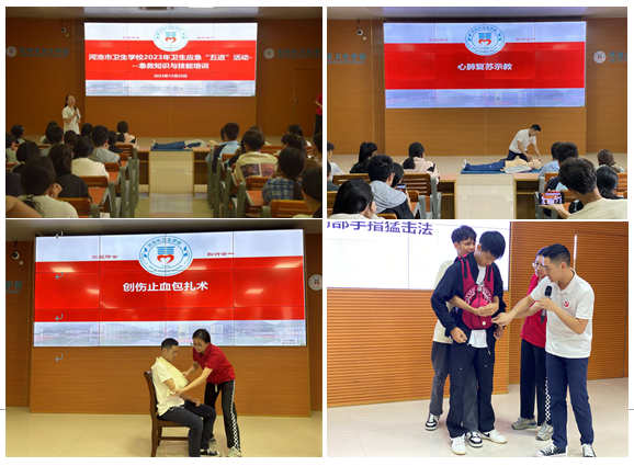为了深入贯彻落实习近平新时代中国特色社会主义思想,结合习近平总书记关于健全公共卫生应急服务体系的重要指示批示精神,同时为了普及全校学生的急救知识,我校于2023年10月20日下午开展了一次“五进”活动暨急救知识技能普及讲座。此次讲座的主讲人为临床教研室班华琼、韦栋和卢娜三位老师,参加讲座的为22、23级学生。