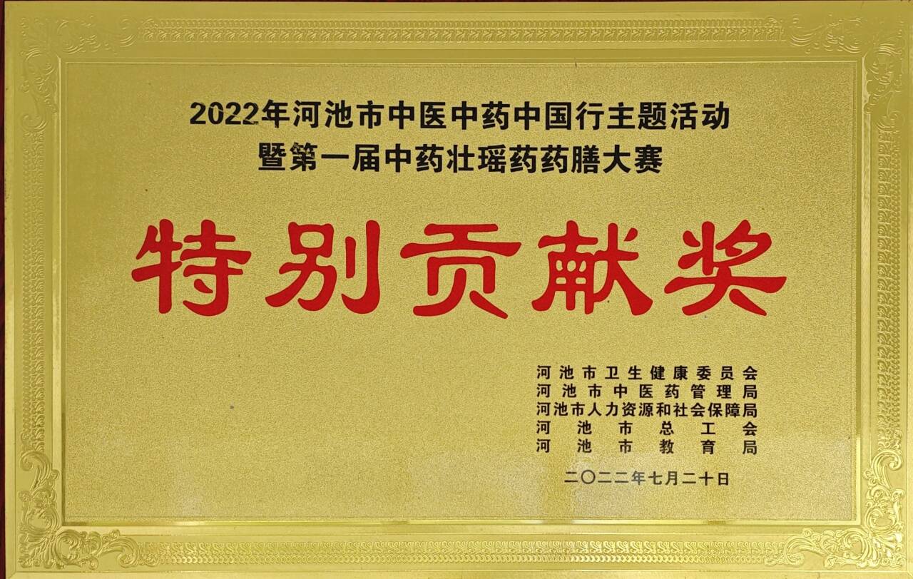 2022年河池市中医中药中国行主题活动暨第一届中药壮瑶药药膳大赛特别贡献奖