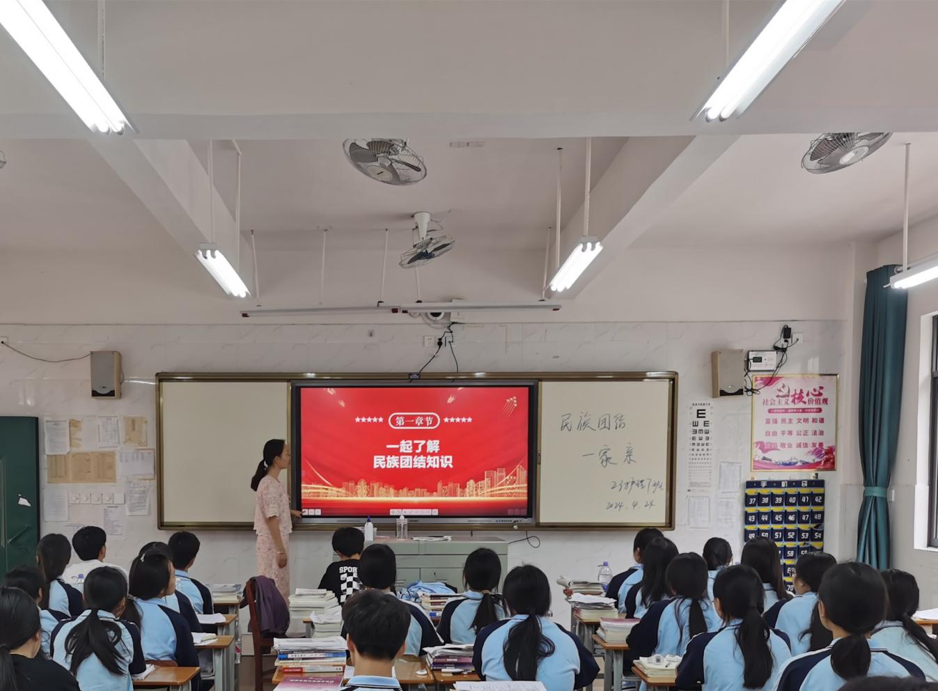 班会上,班主任主通过“一起了解民族团结知识、一起听民族团结故事、如何维护民族团结”三个方面引导学生将民族团结一家亲精神落到实际行动上,进一步引领广大师生铸牢中华民族共同体意识。