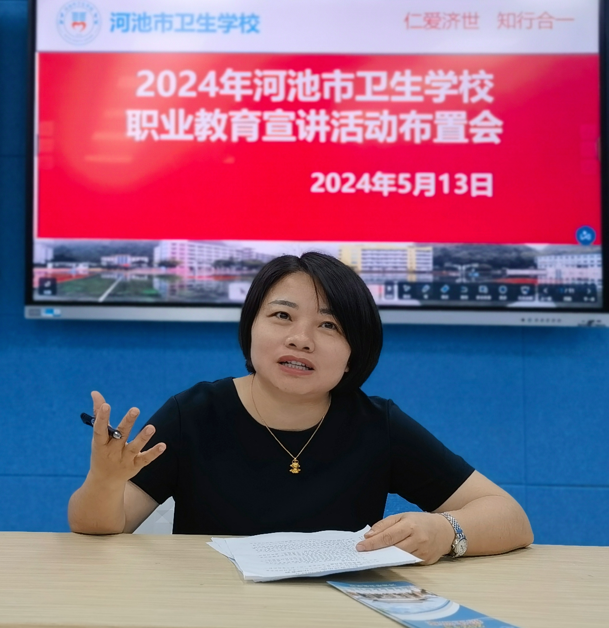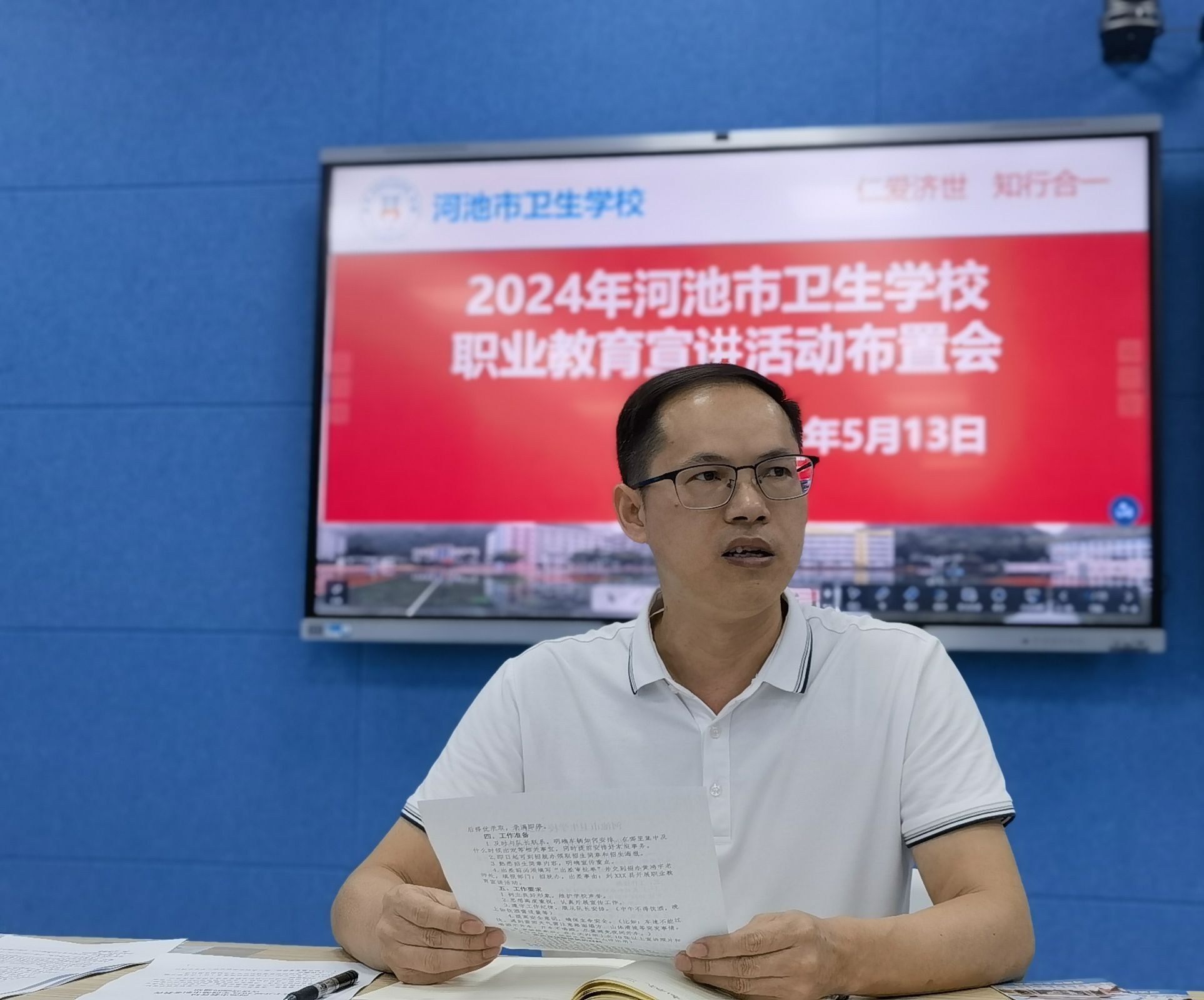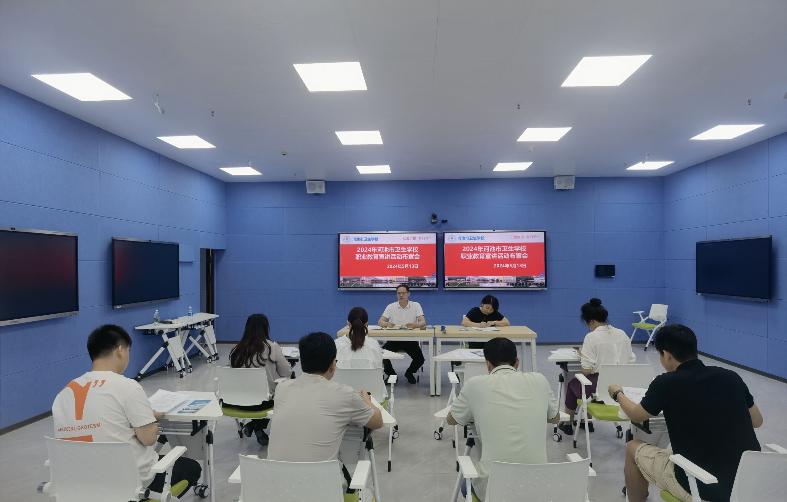 根据河池市教育局《关于开展2024年河池市职业教育宣讲活动的通知》精神,5月13日上午,学校在智慧教室召开职业教育宣讲及招生宣传活动工作部署会。学校副校长莫苗、各县宣讲人员及学校招生就业办全体人员参加本次会议。