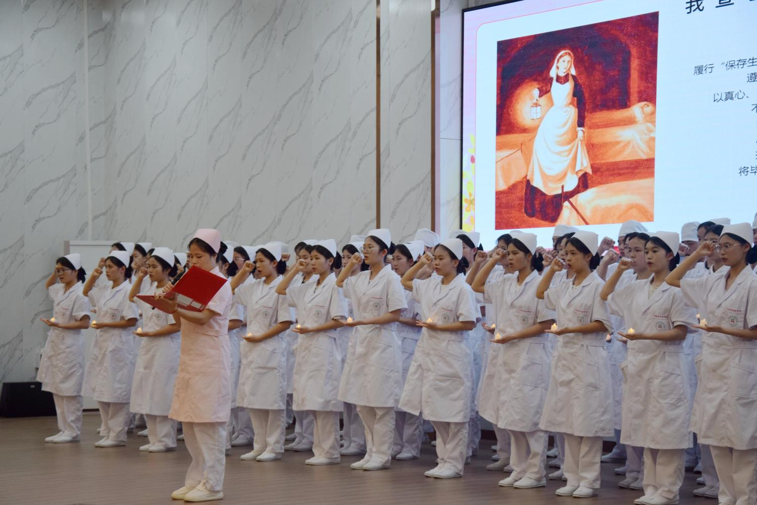 在仪式的最后,全体同学们们举起右拳,跟随着周相幸老师重温南丁格尔誓言。她们承诺将用自己的专业知识和技能,为人类健康事业贡献自己的力量。