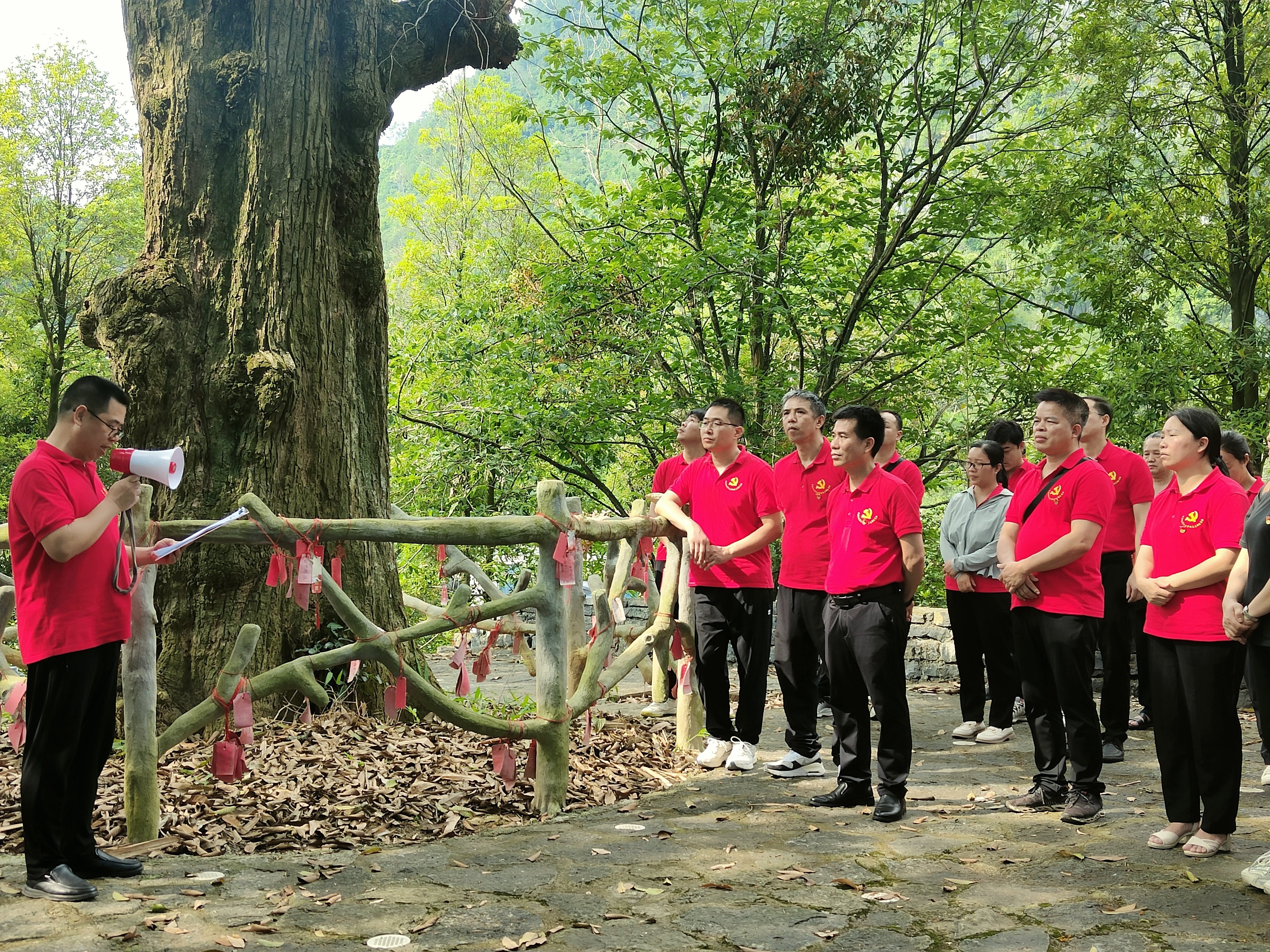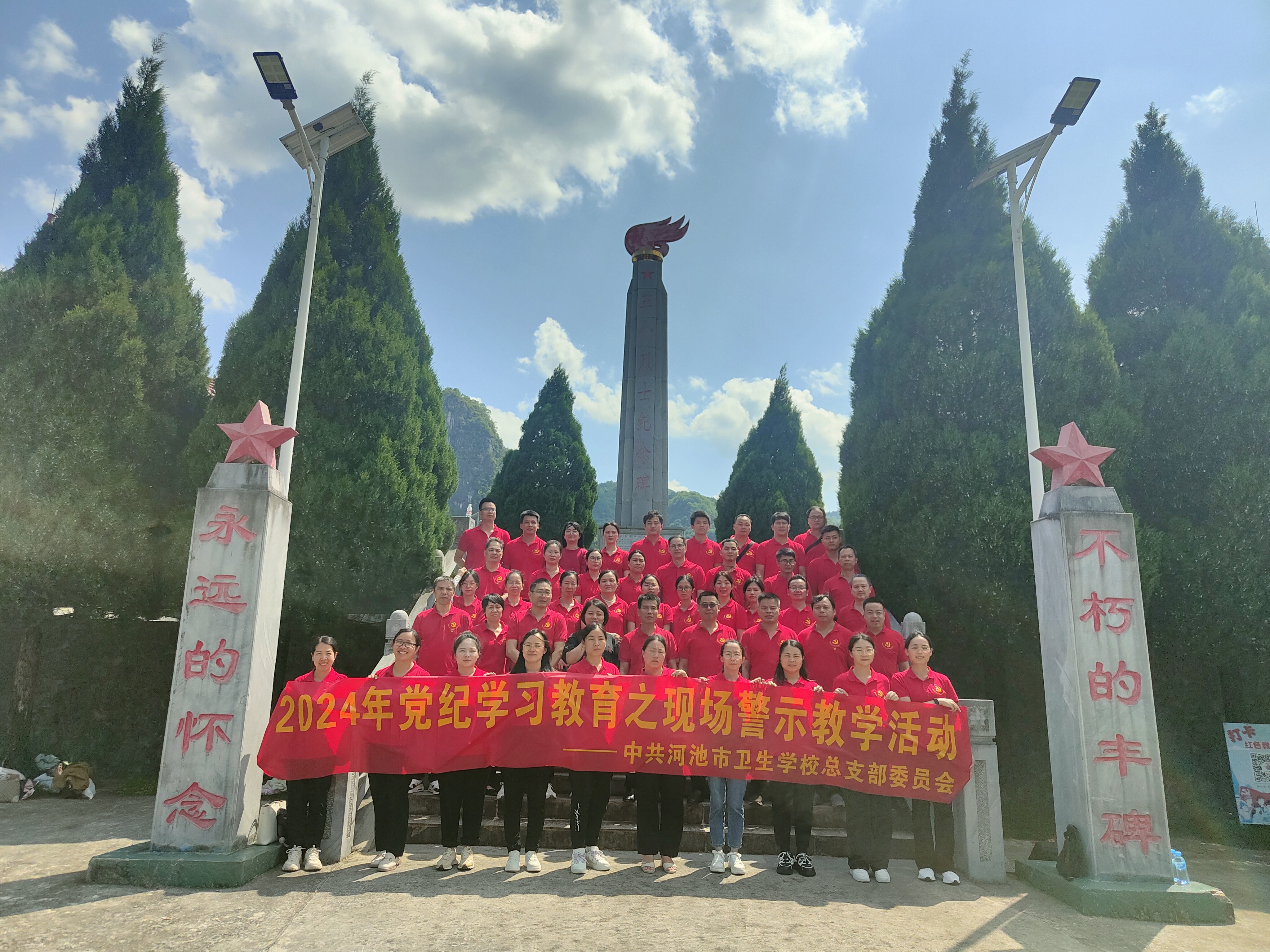 5月24日,我校全体在职党员、入党积极分子一行50人到河池市凤山县中亭乡红军村开展党纪学习教育暨党风廉政教育现场教学活动。