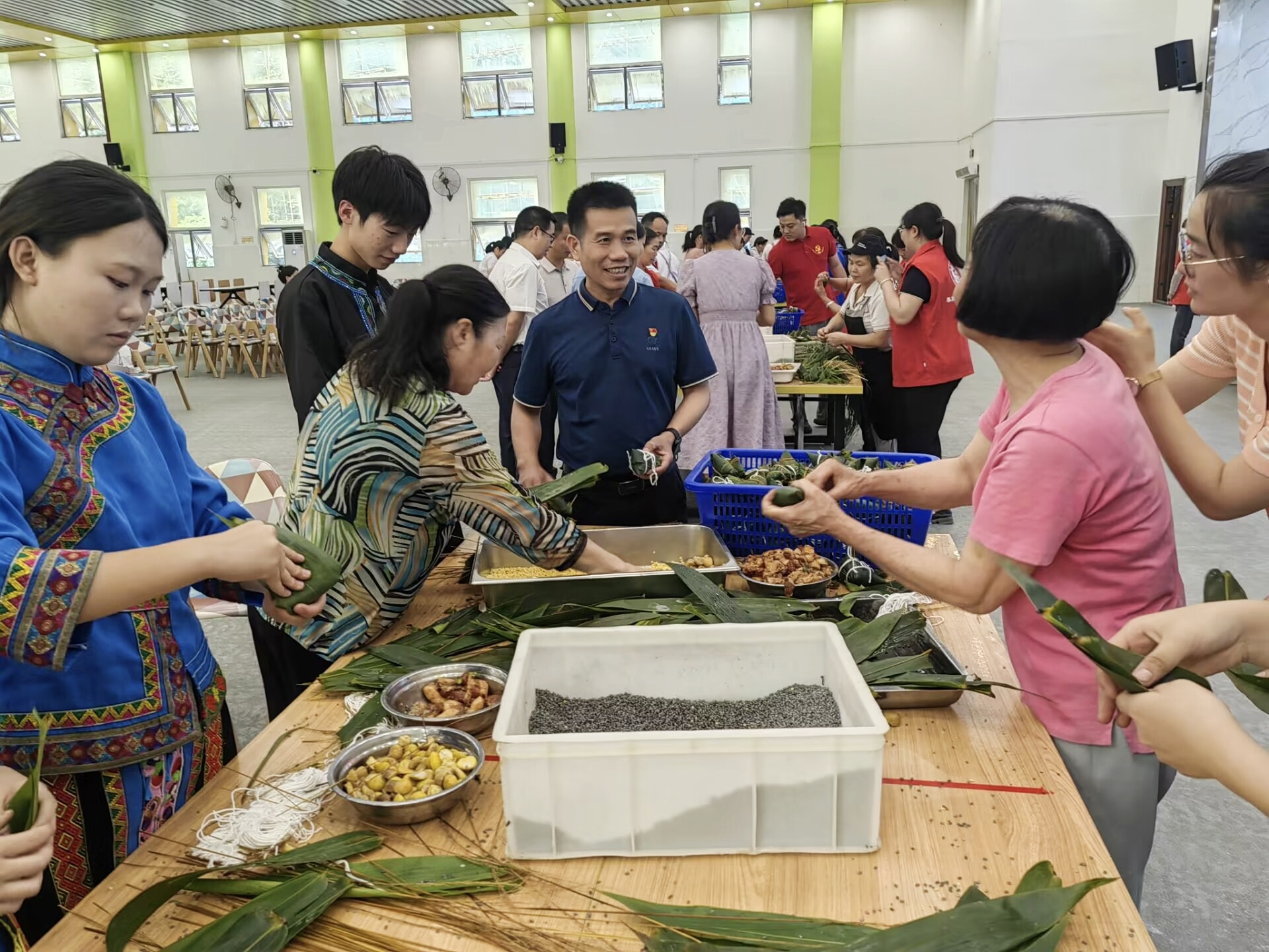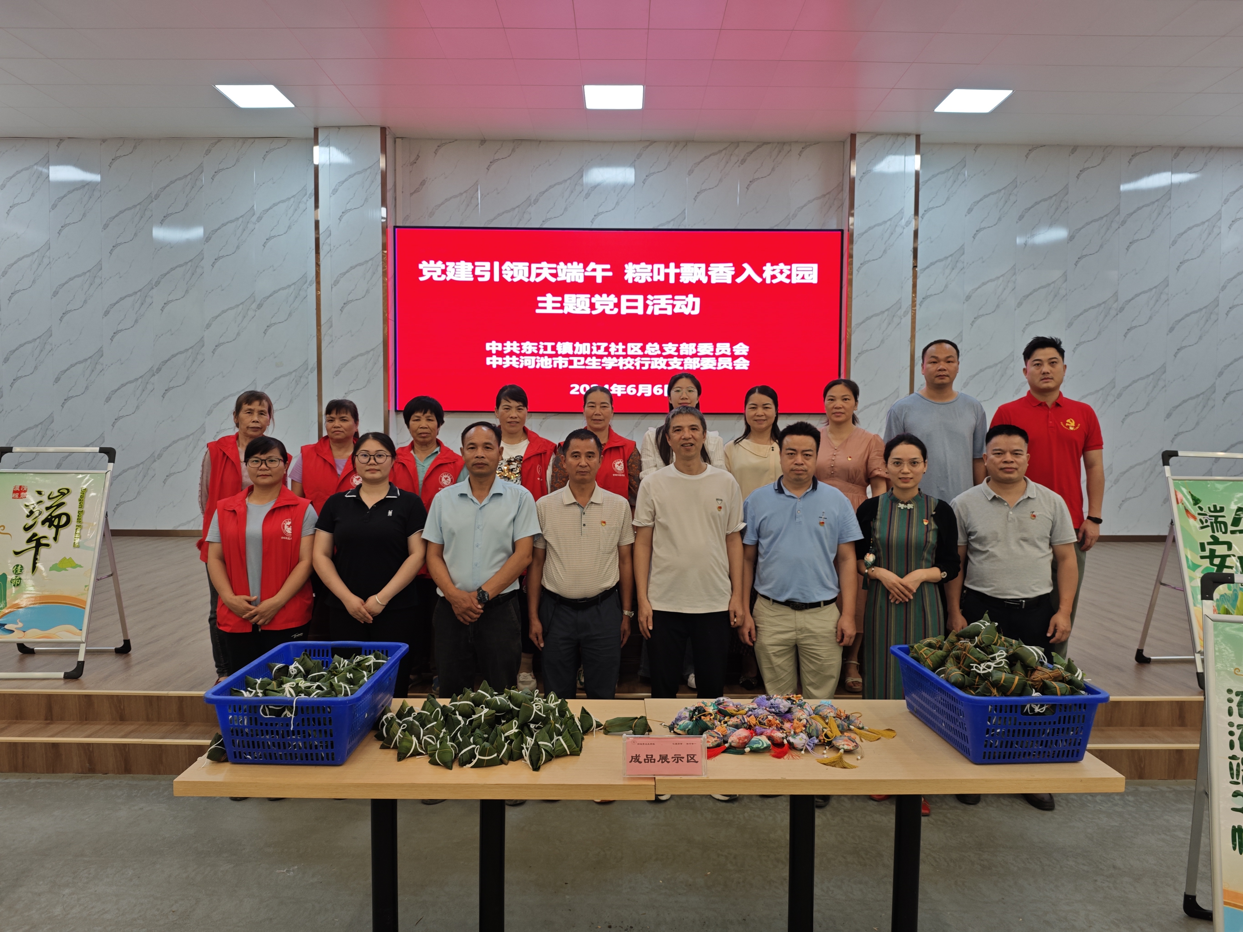 为铸牢中华民族共同体意识,弘扬中华民族传统文化,充分发挥党建引领作用,丰富师生、社区群众的精神文化生活,2024年6月6日,河池市卫生学校行政党支部与河池市金城江区加辽社区党总支联合开展“党建引领庆端午,粽叶飘香入校园”主题党日活动。