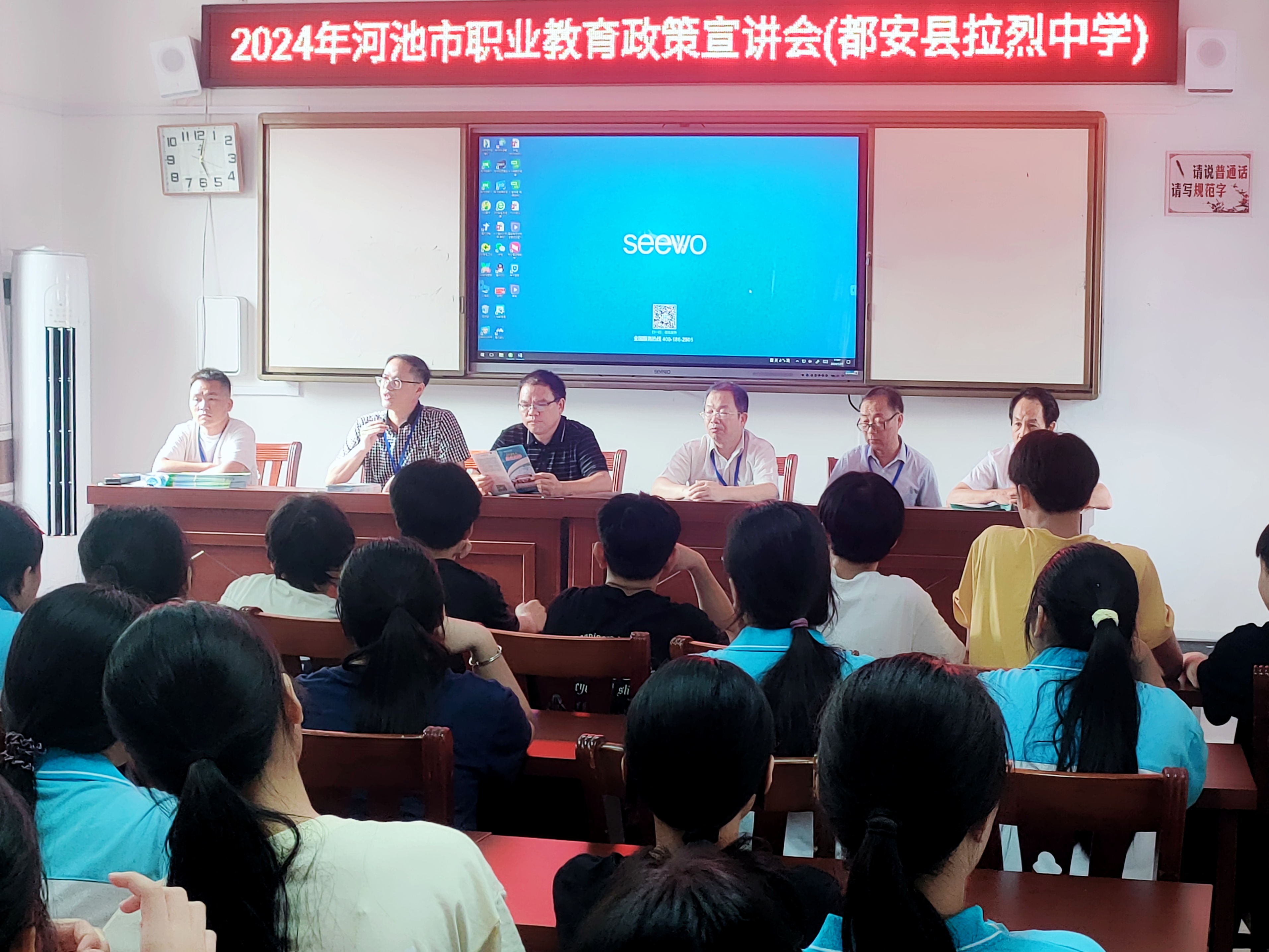 5月至6月初,学校精心挑选组织中层干部及部分教师,分批次前往河池市各县的初级中学开展职业教育宣传活动。他们通过分发招生简章等形式,在现场向初三学生全面介绍河池卫校的办学成效、专业介绍、招生计划、升学就业前景和报读须知等关键信息。同时,积极鼓励并引导初三学生根据自身兴趣爱好,合理选择专业,明确适合自己的职业方向,为未来发展奠定坚实基础。