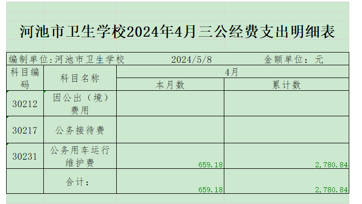 【上一篇】:河池市卫生学校2024年5月三公经费支出明细表