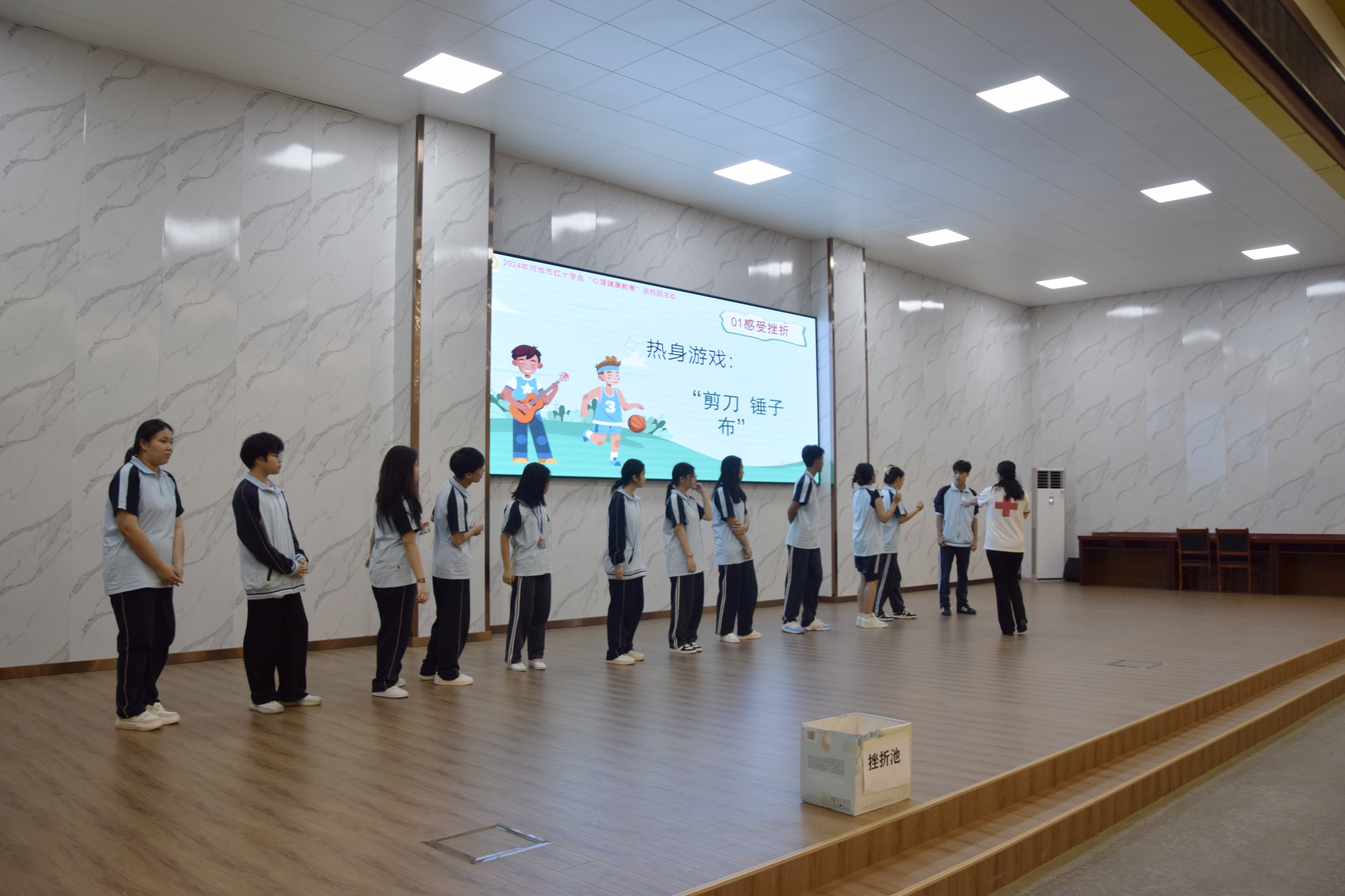 本次讲座的主讲人是河池市红十字会心理救援队队长杨华,她围绕感受挫折、认识挫折、诉说挫折、战胜挫折等内容展开。讲座过程中,杨华队长巧妙设计多个情境,善用故事启发、交流分享、观看视频等方式充分发挥同学们的主体性。