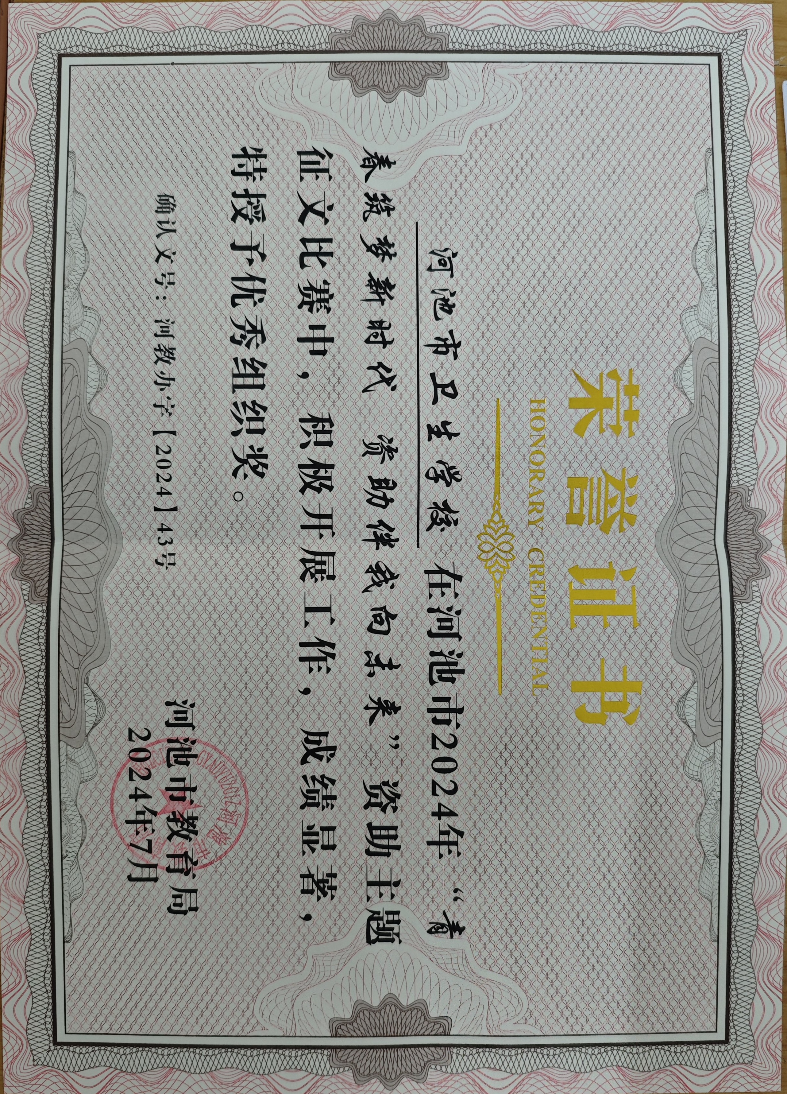 荣获2024年资助征文优秀组织奖-河池市教育局