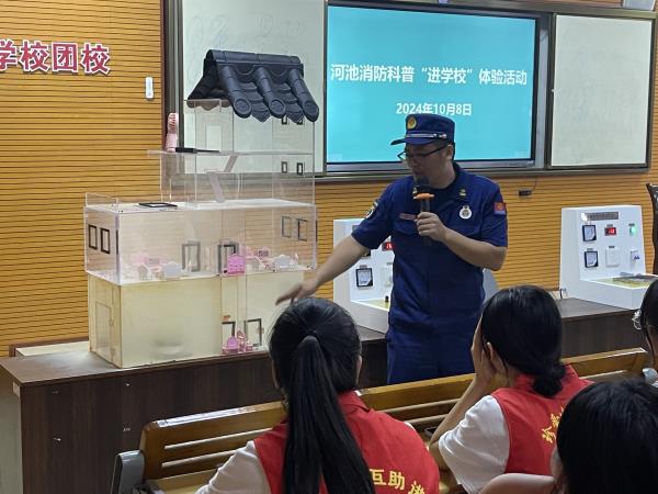 10月8日下午,河池市消防救援支队来到河池市卫生学校,开展消防科普“进校园”体验活动,为师生普及消防安全知识,提高师生的事故防范能力与自救能力。