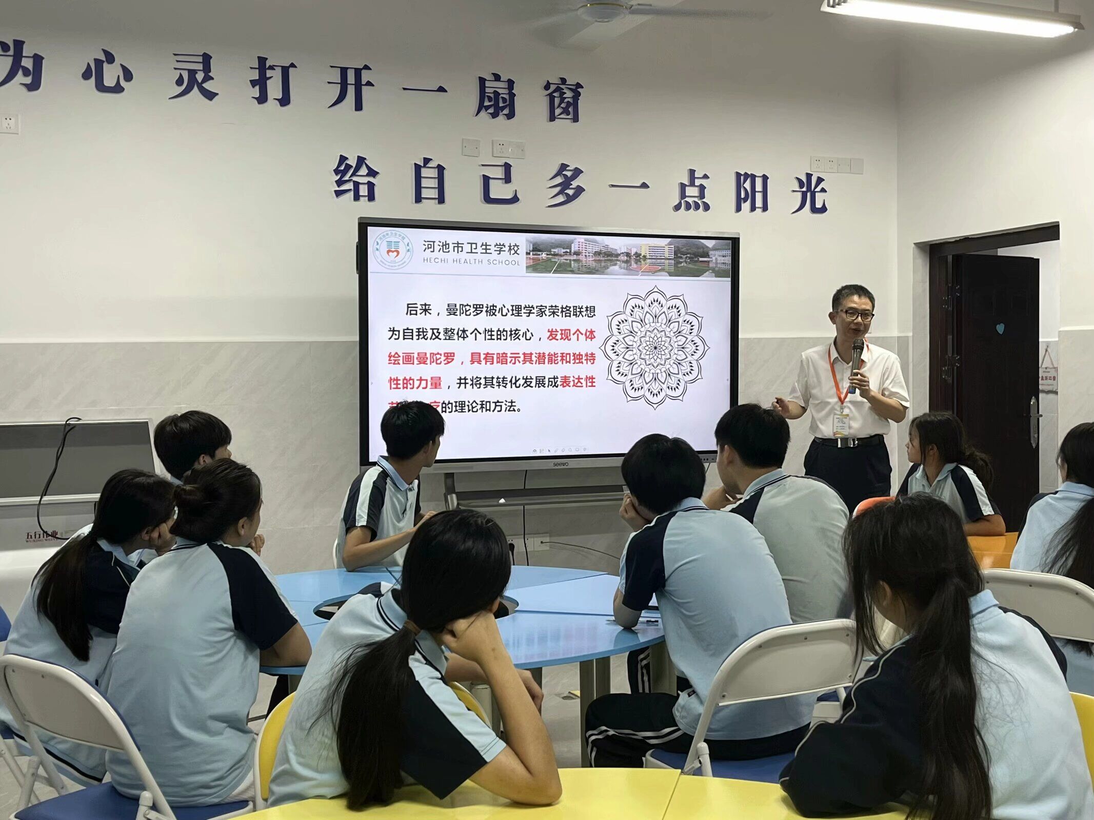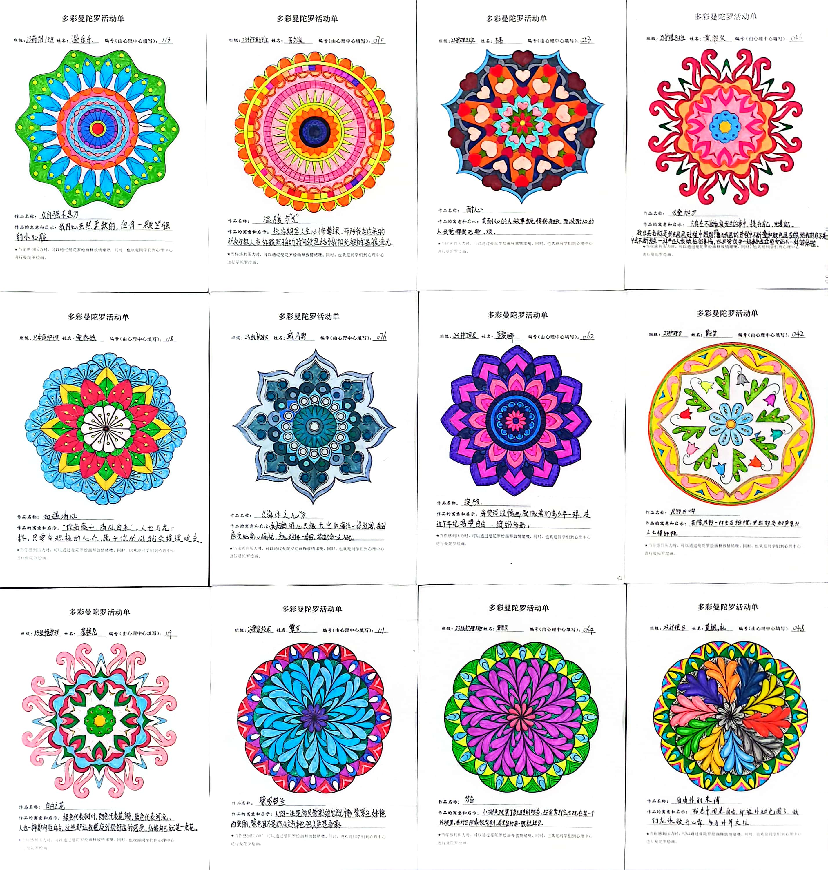 曼陀罗绘画是由著名心理学家荣格经历艰难的心灵探索,借鉴东方哲学发展而成的艺术表达性治疗方法。在今年5.25心理健康教育活动月系列活动中,心理健康发展中心组织150名学生参加彩绘曼陀罗活动。