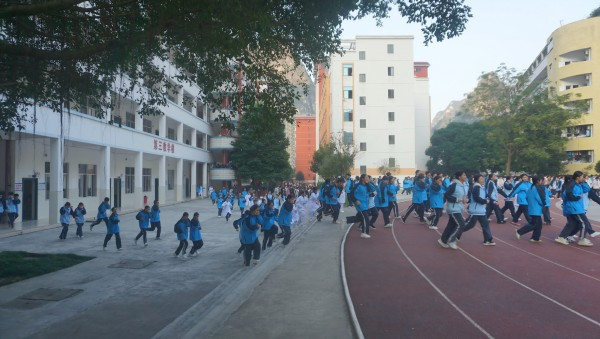 师生快速疏散到运动场