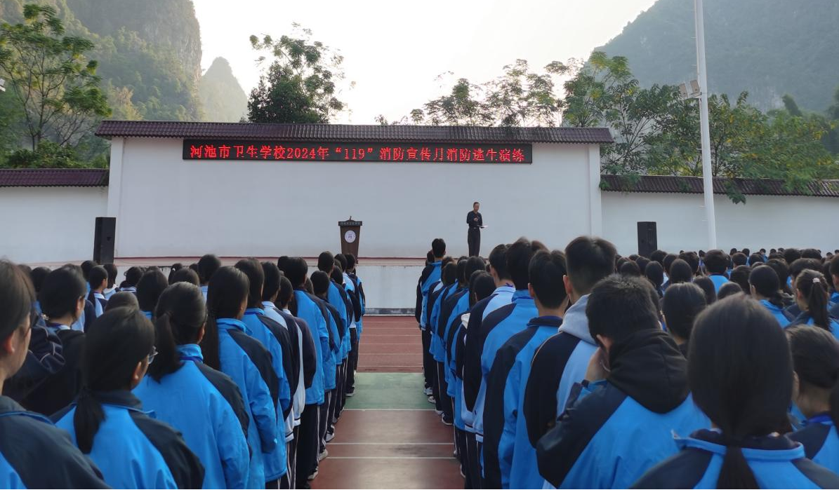 11月12日上午,河池市卫生学校开展2024年秋季学期“11•9消防宣传月”消防逃生演练活动,学校全体师生共3000多人参加此次演练。