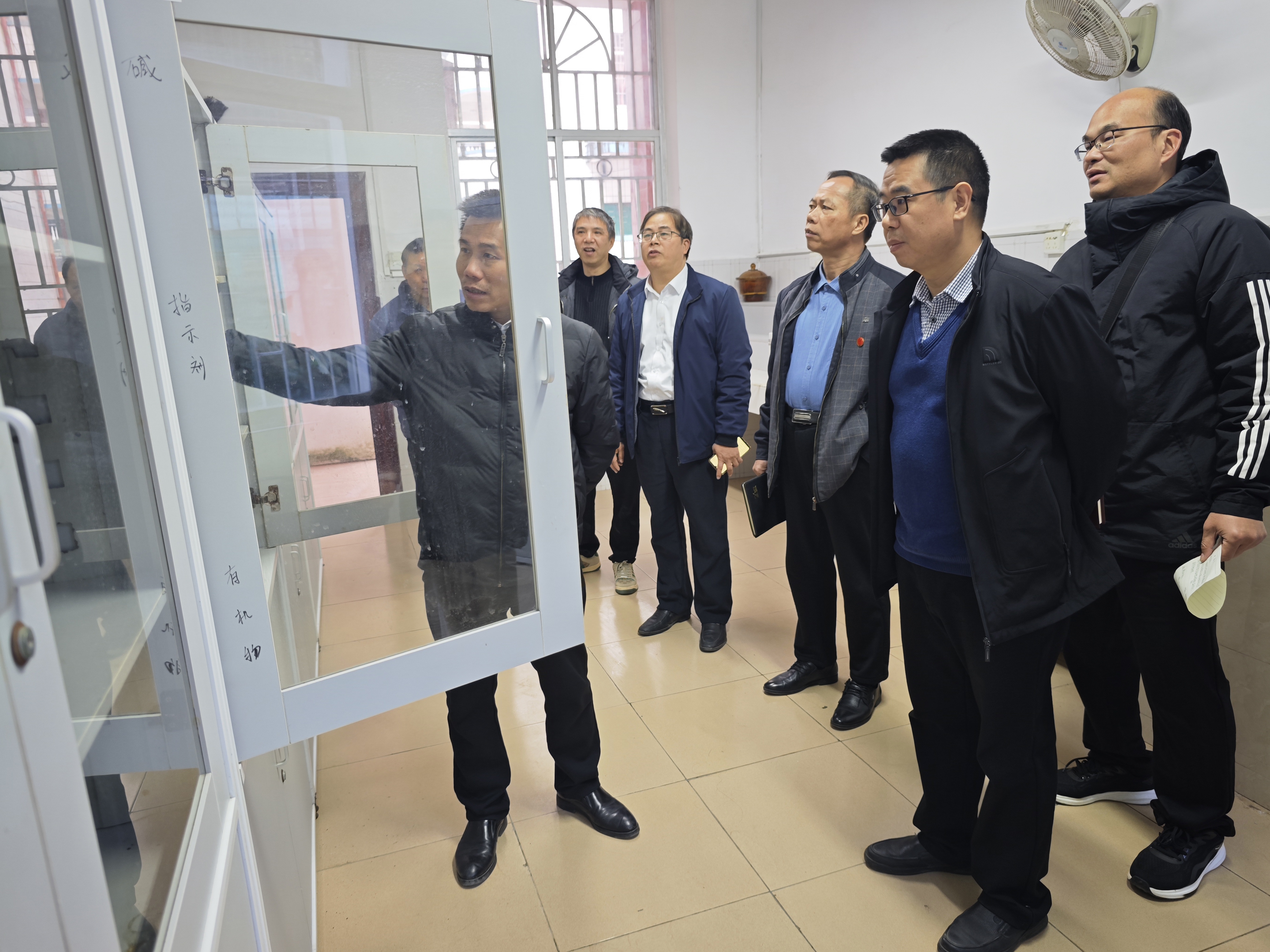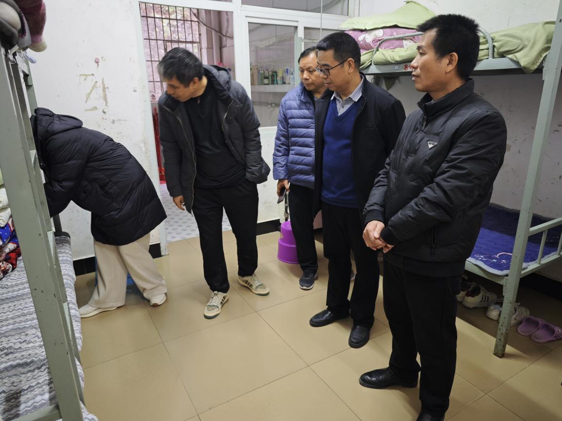 12月17日,在校党总支书记、校长陈朝亮的带领下,检查组先后对学校实验室、校医室、学生宿舍、食堂进行了检查。