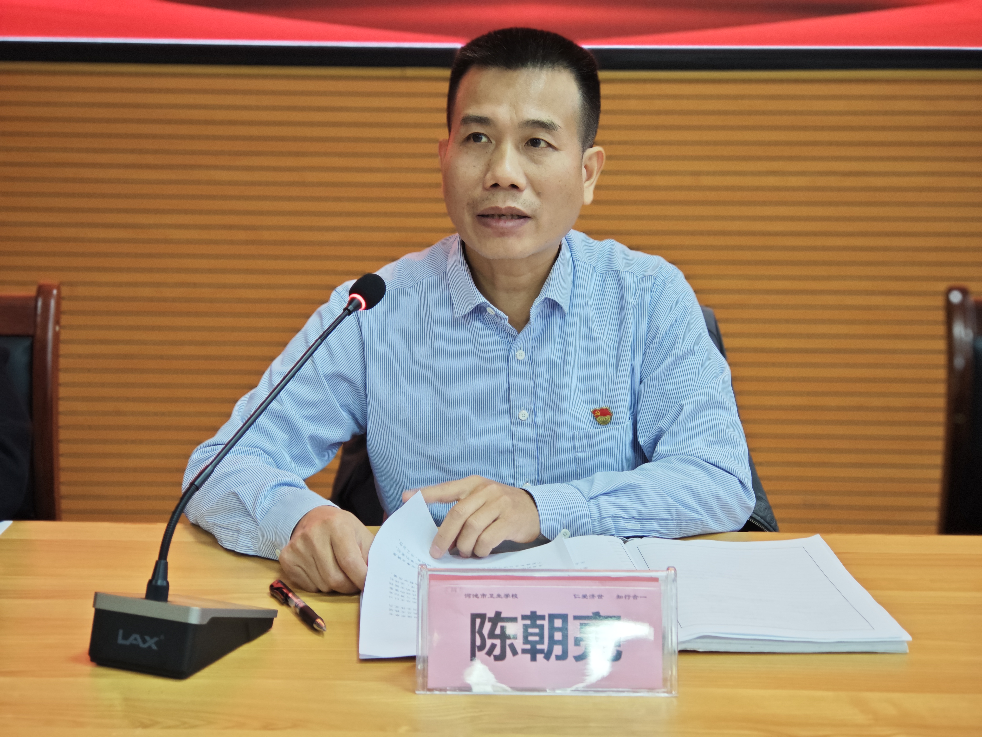 接着,我校党总支书记、校长陈朝亮同志作了党总支工作总结暨总支部换届述职报告。在报告中,陈朝亮同志首先从政治思想建设、组织建设、战斗堡垒作用三个方面全面概括地总结了上届总支委会的主要工作和取得的成绩。在河池市卫生健康党工委的领导下,我校党总支带领全体党员和教职工认真贯彻党的教育方针,开拓创新,奋勇拼搏,积极打造教育特色,学校实现了跨越式发展,2023年通过自治区教学诊改、被自治区授予“双优学校”建设单位,2023年、2024年连续两年获“河池市教育教学综合质量优秀学校”等称号。