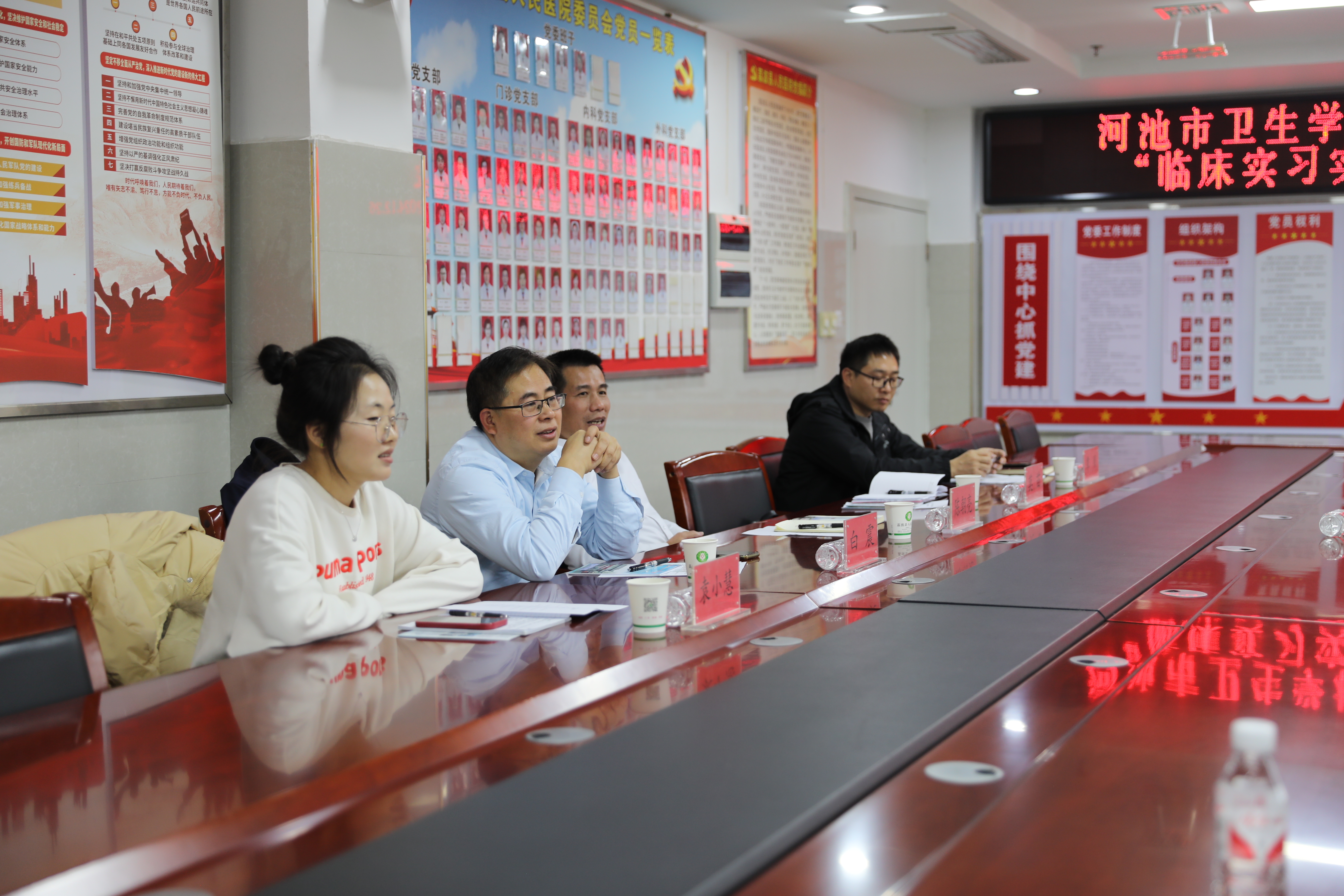 河池市卫生学校党总书记陈朝亮对荔波县人民医院的教学工作给予高度评价,感谢医院对实习生的耐心指导、授业解惑、辛勤付出,并简要介绍了河池市卫生学校的办学历程及目前建设情况。