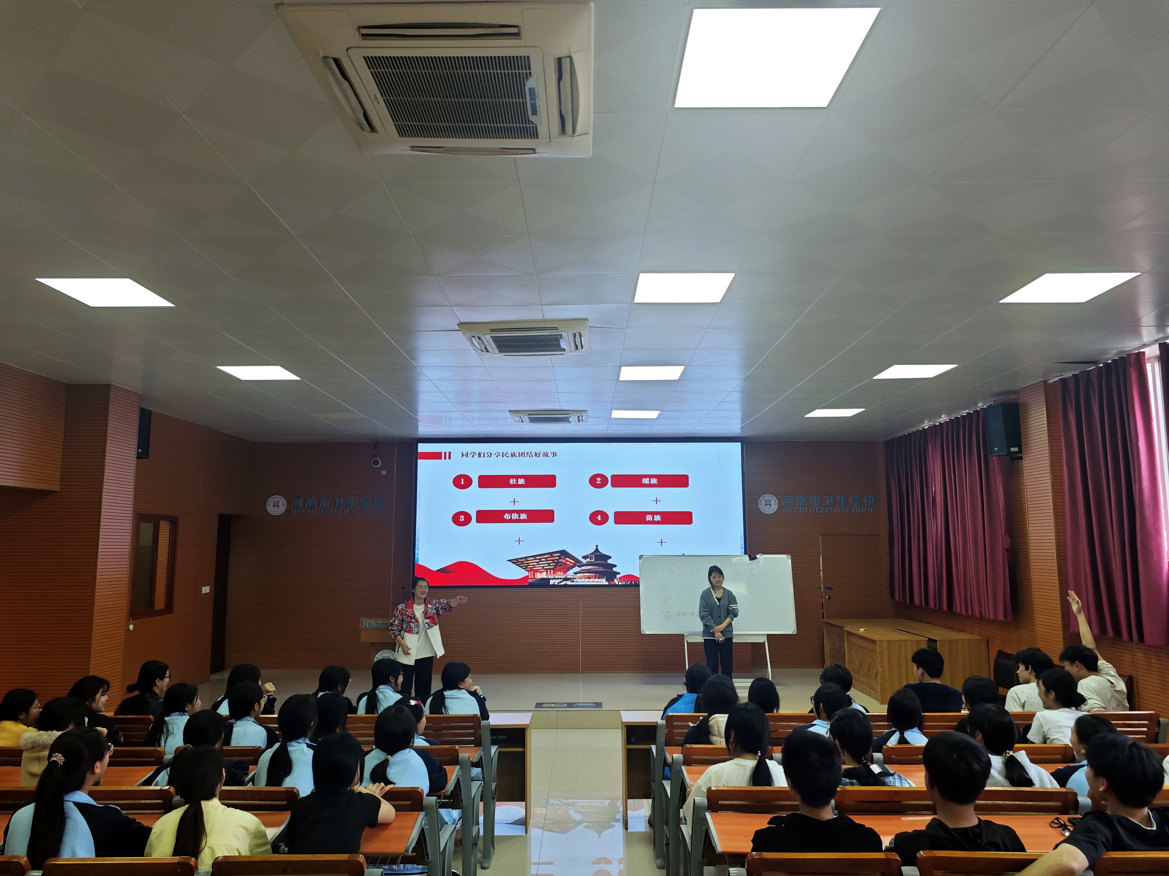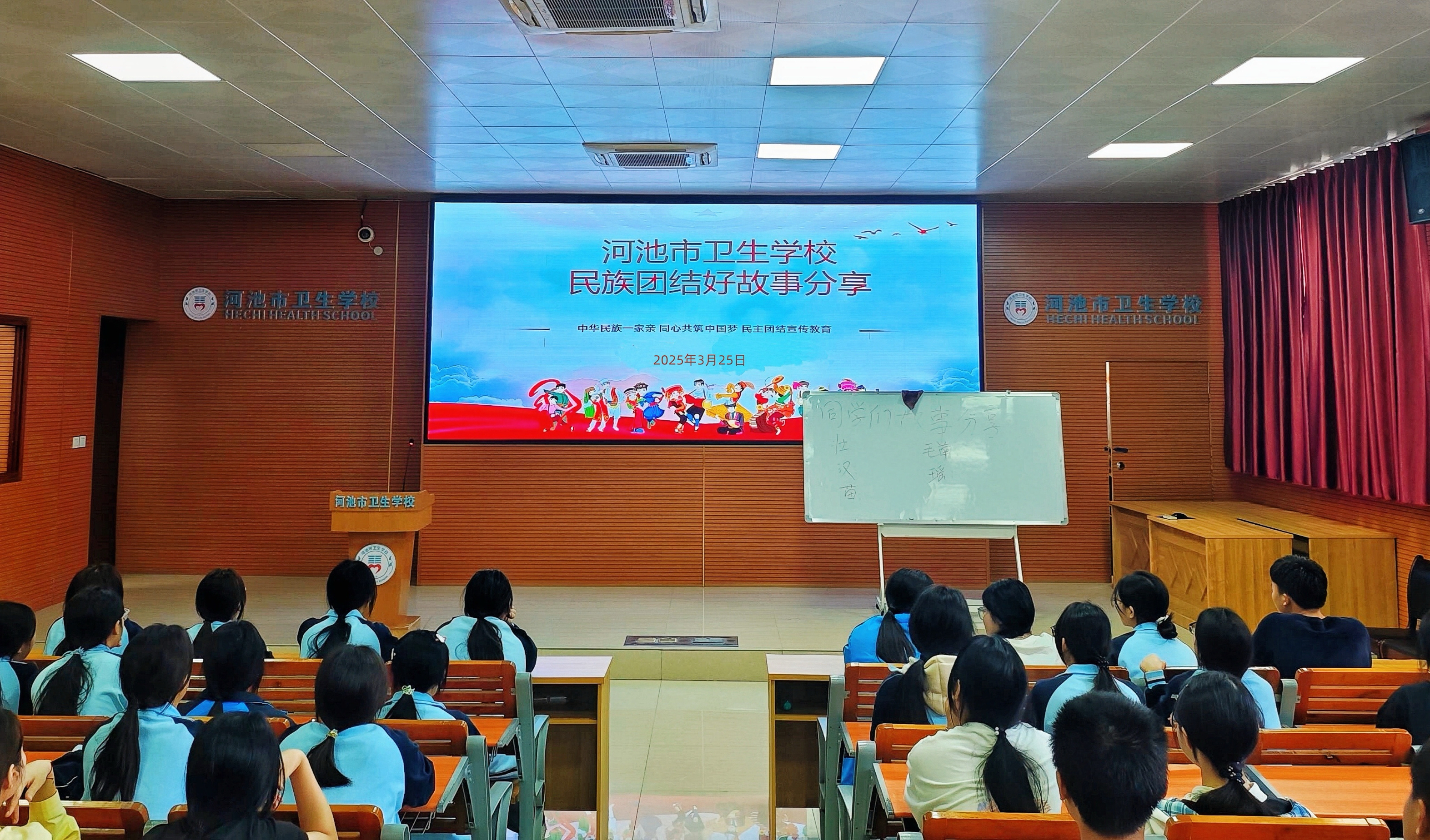 为有形有感有效促进民族团结进步宣传教育,更好增强青少年铸牢中华民族共同体意识的思想与行动自觉,促进各族青少年交往交流交融,2025年3月25日,河池市卫生学校利用主题班会课开展了“民族团结好故事分享活动。
