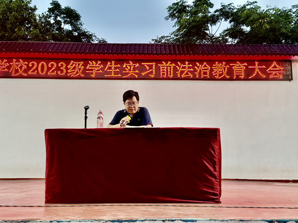 为强化学生法治观念,筑牢实习安全防线,5月11日晚,河池市卫生学校组织2023级全体学生召开实习前法制教育大会。活动特邀学校法律顾问韦朗舒律师担任主讲,通过理论讲解与案例分析相结合的方式,为即将踏上实习岗位的学子们上了一堂生动的法治课。