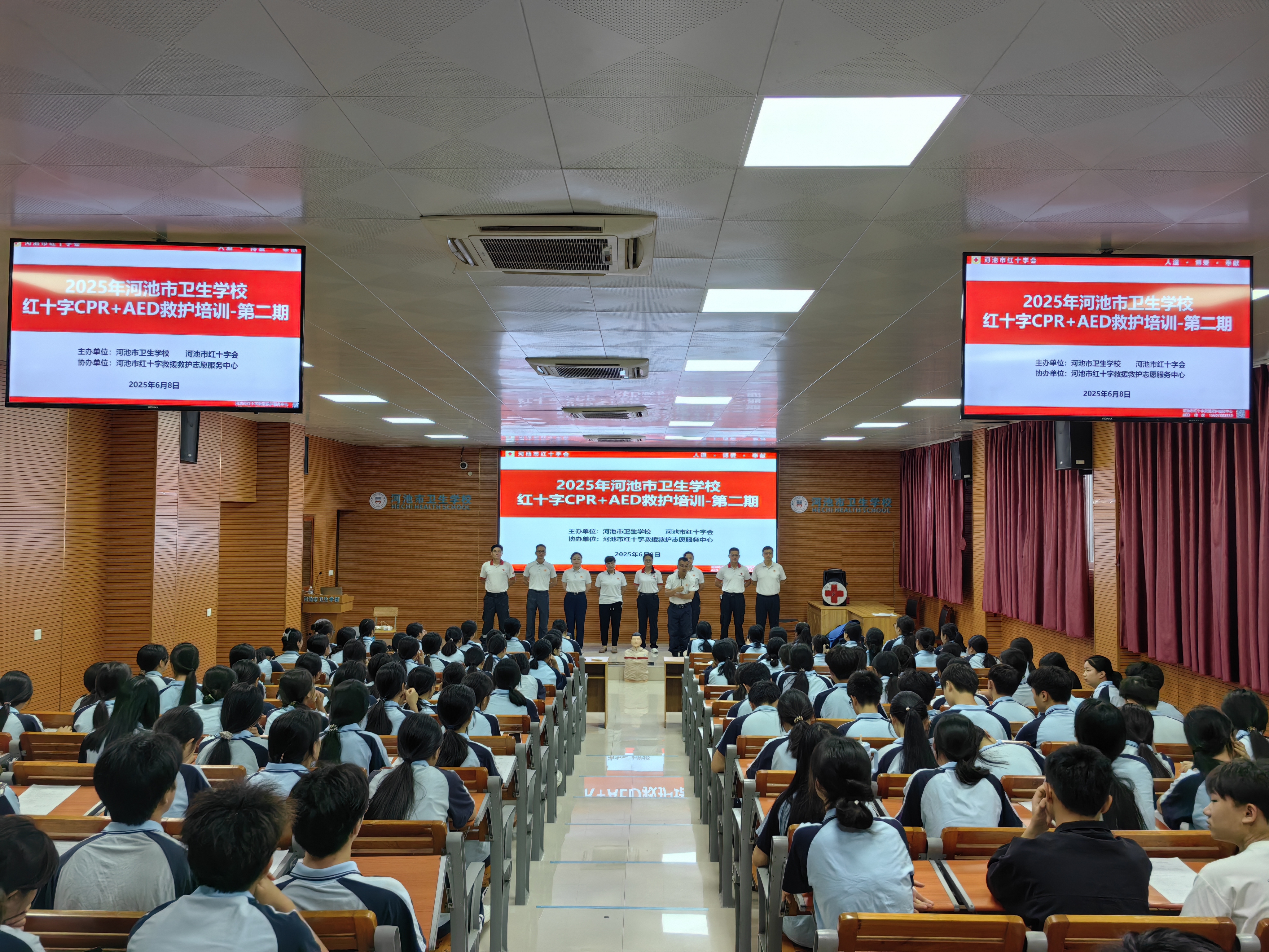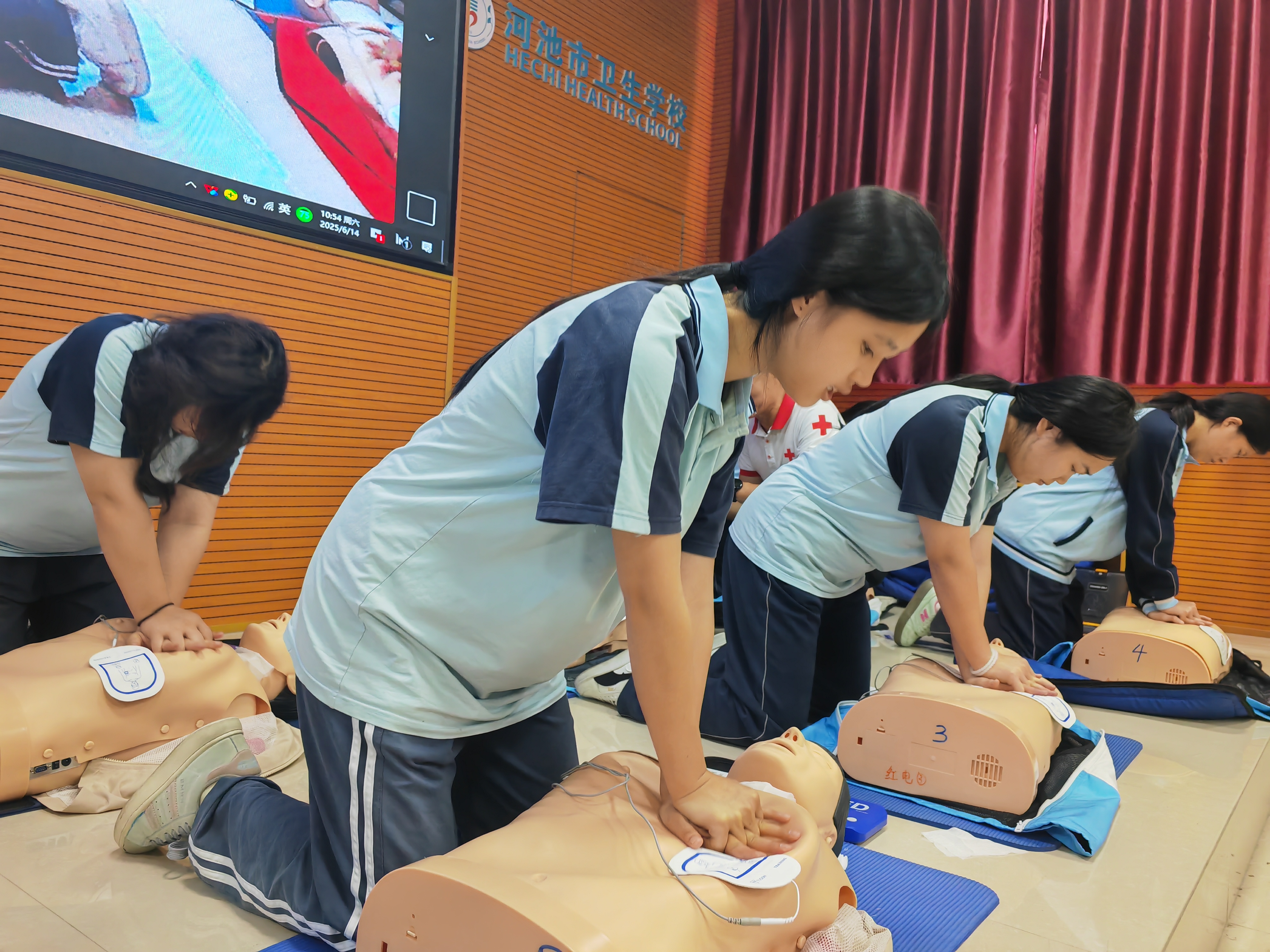近日,河池市卫生学校成功举办了三期应急救护知识与技能培训。本次培训特邀河池市红十字会专业团队进校授课,惠及全校600名在校学生,取得了显著成效。