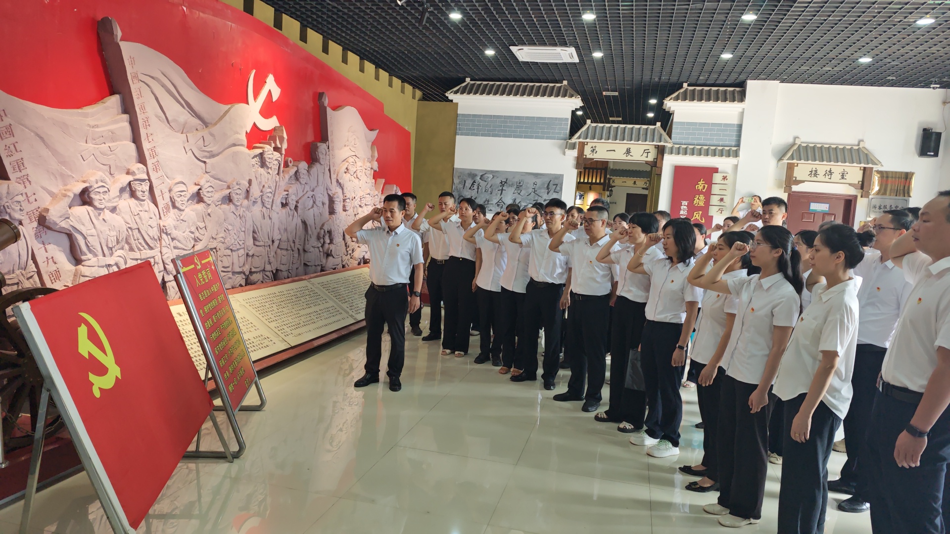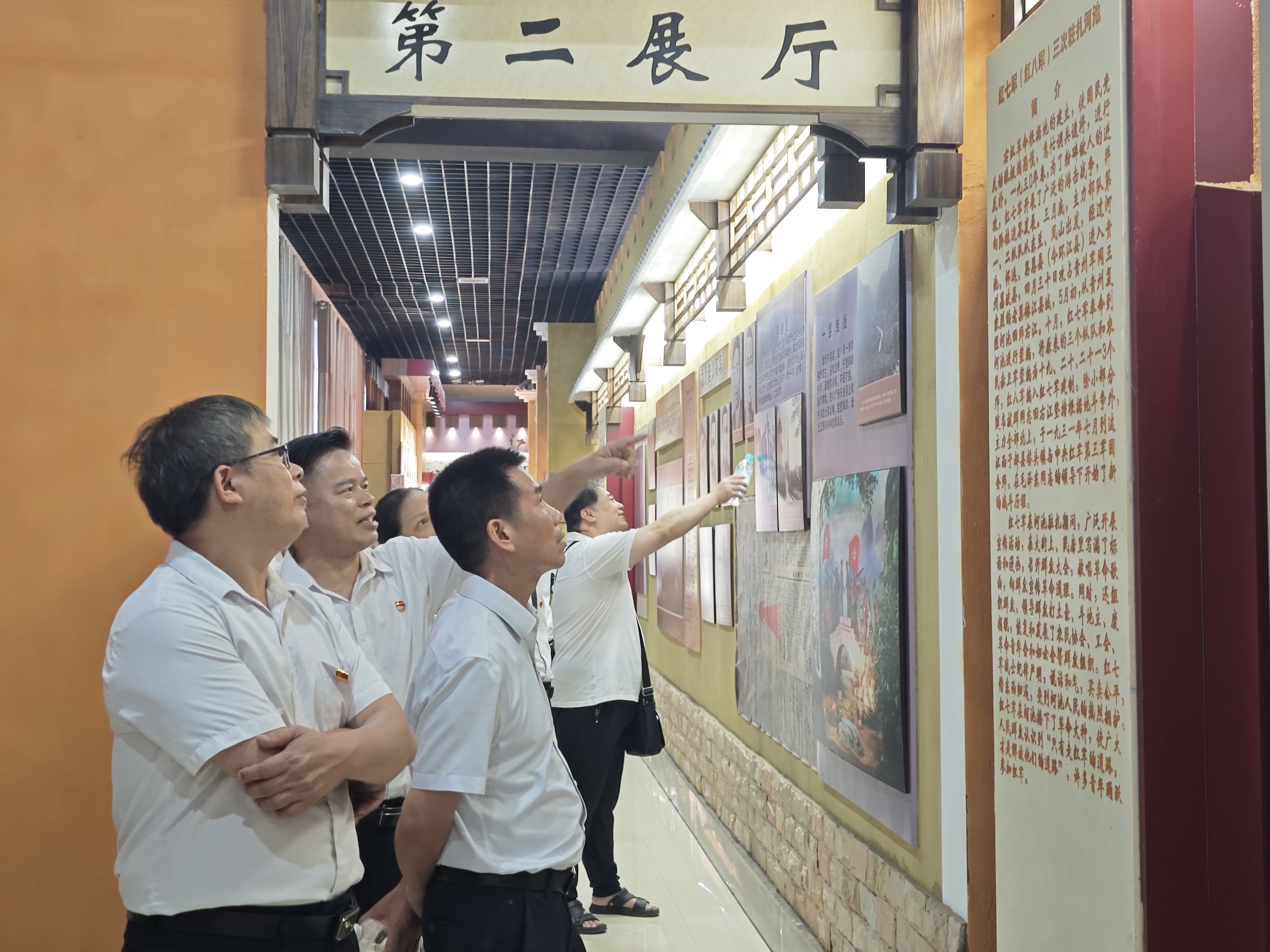 在纪念馆内,全体人员沿着展厅脉络,重温1930年邓小平、张云逸等老一辈无产阶级革命家在此庄严检阅7000余名红军将士的光辉历史。铁一般的纪律铸就了“千里来龙”的钢铁之师,而展陈中“广安昌盐店”的仿制门牌更诉说着一段动人往事:当年红军向盐店借200斤盐时许下归还承诺,店主胡作卿因曾受国民党军队欺骗而心存疑虑。直至红军从贵州凯旋,不仅如数归还食盐,更以“不拿群众一针一线”的实际行动赢得百姓信任。这一“有借有还”的质朴承诺,正是红七军、红八军纪律严明的生动缩影。