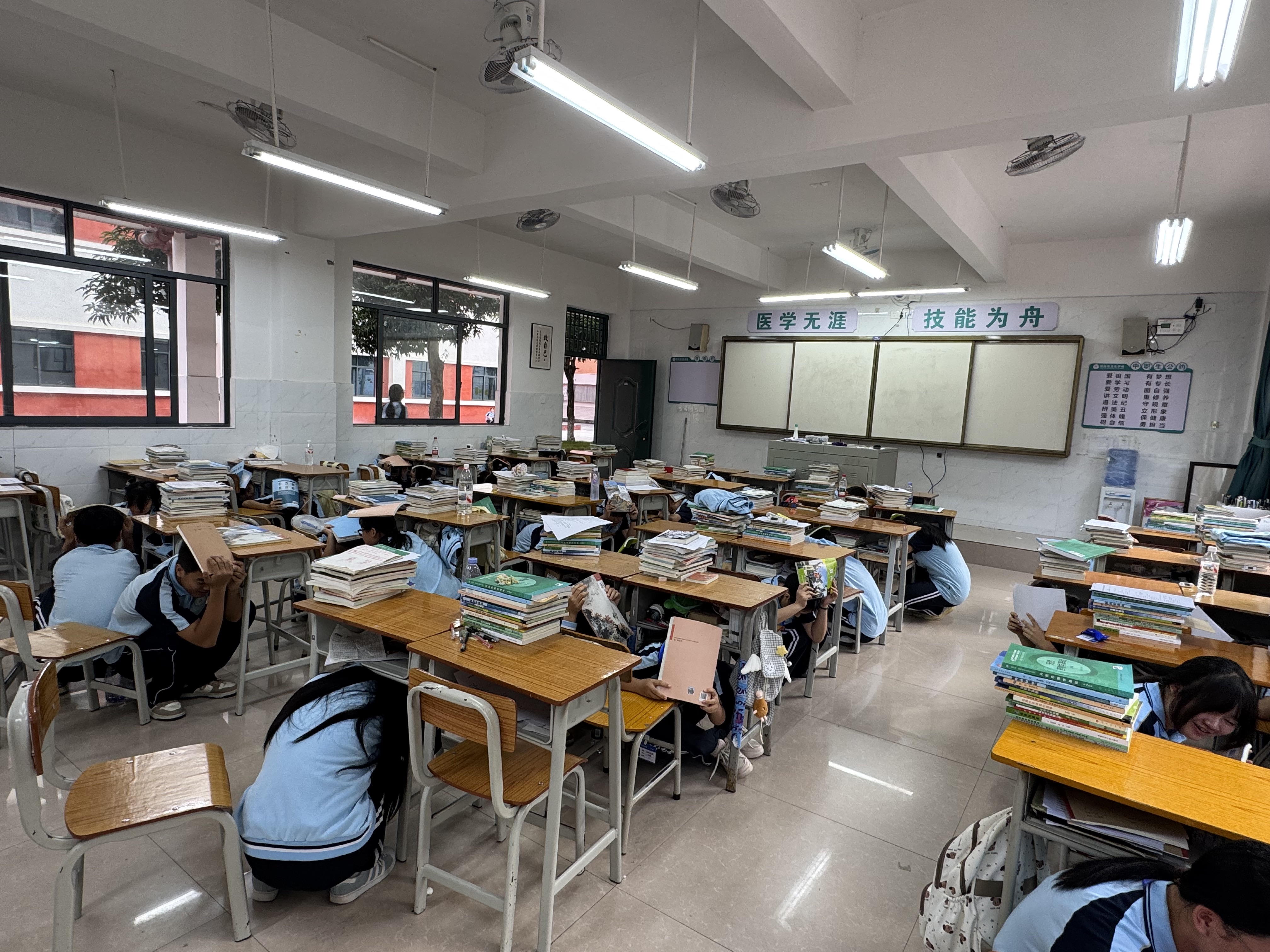 教室避险练“真功”